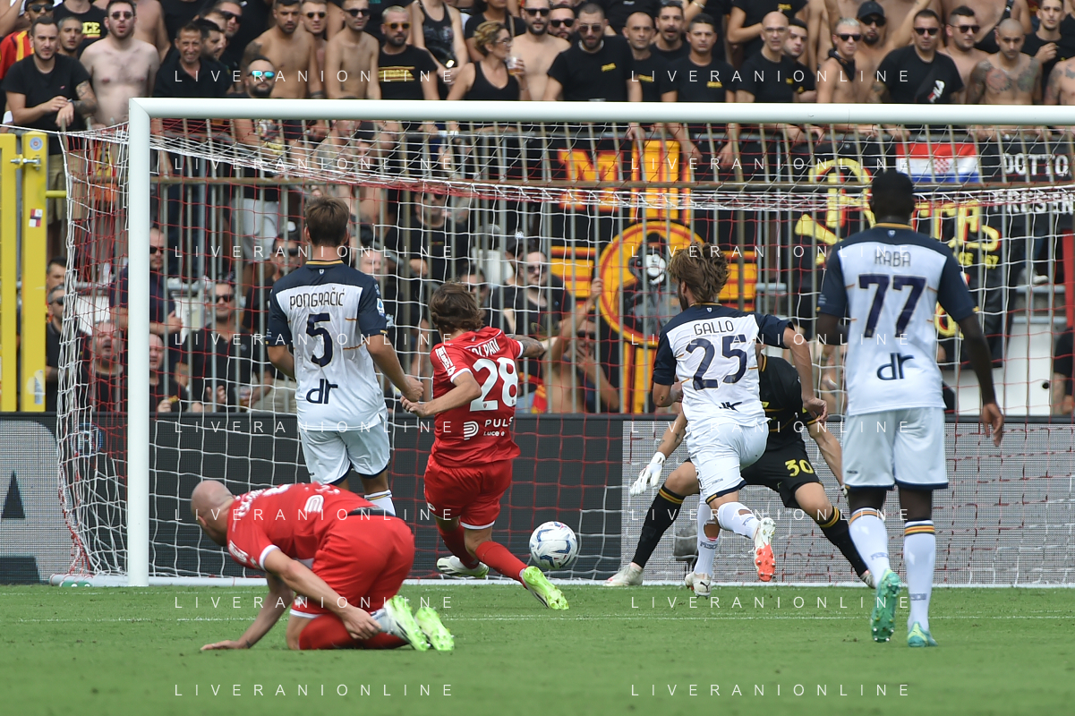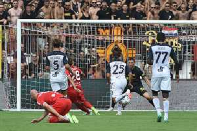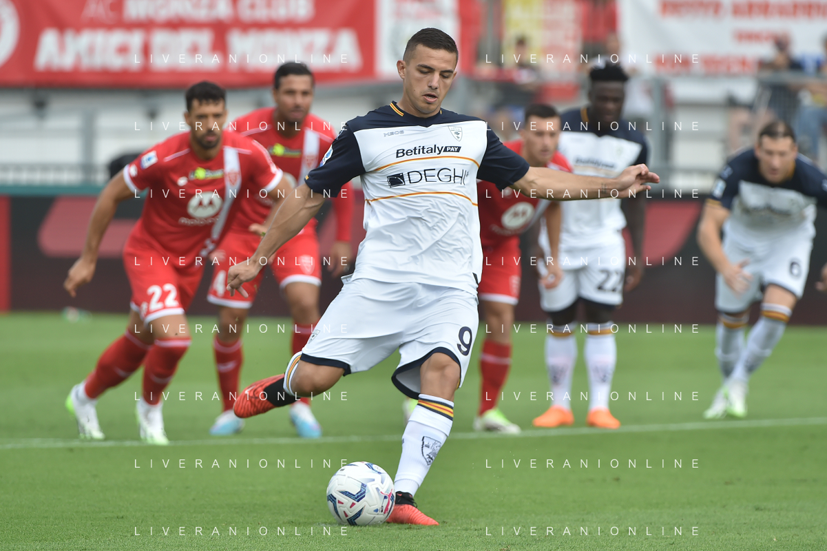 TVRG Monza vs Lecce nella foto Nikola Krstovic (Lecce) segna il gol dell'1 a 0 Monza 17-09-2023 U-Power Stadium Campionato Serie A TIM - 4a giornata foto Roberto Garavaglia/ag. Aldo Liverani sas