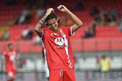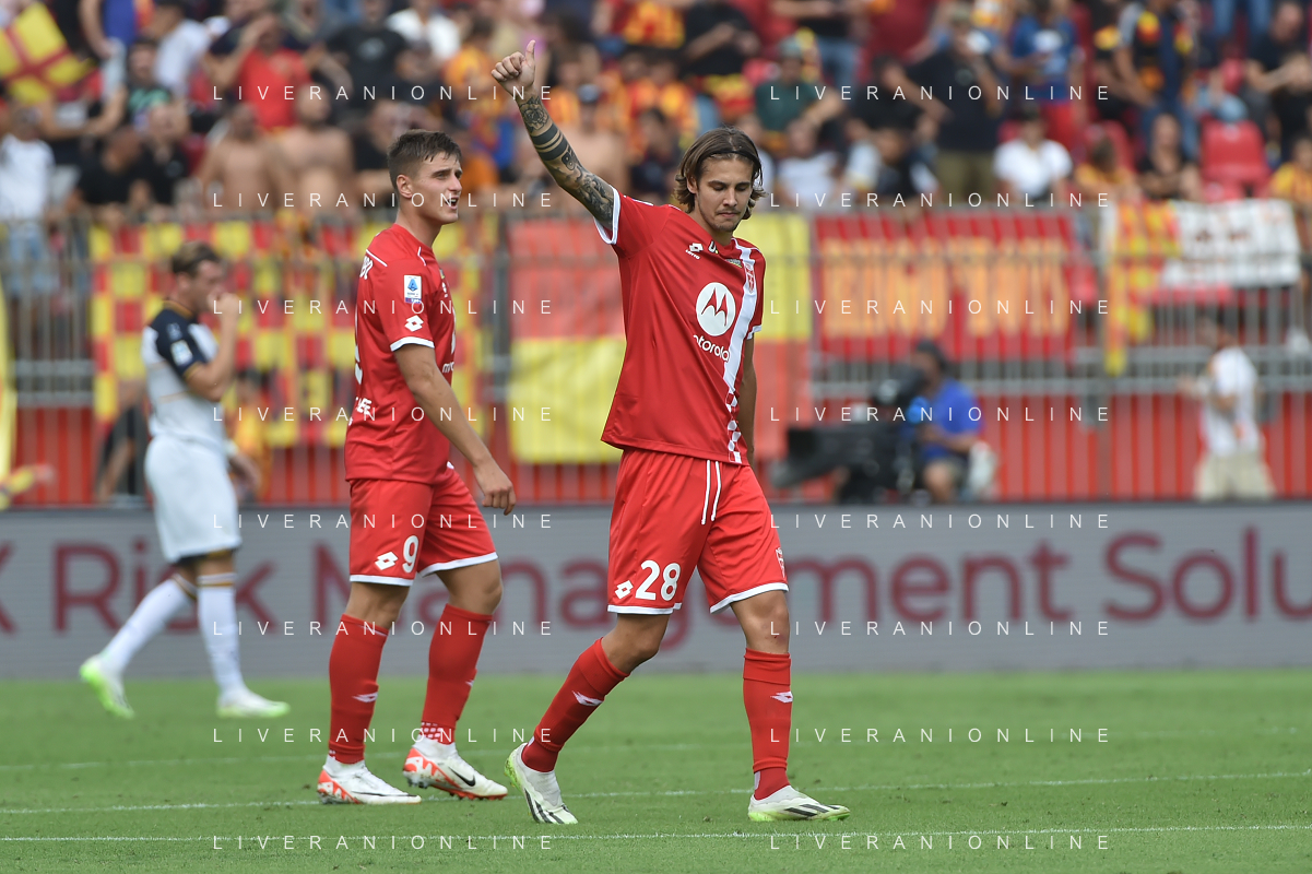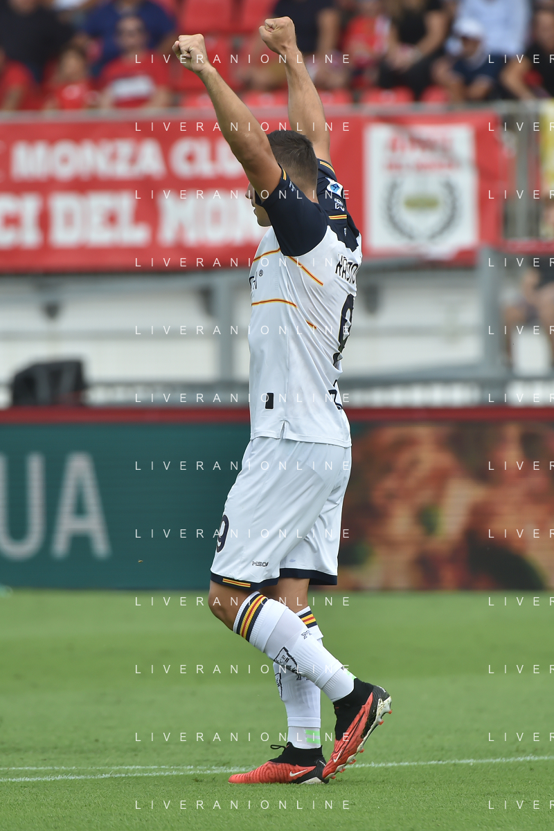 TVRG Monza vs Lecce nella foto Nikola Krstovic (Lecce) esulta dopo il gol dell'1 a 0 Monza 17-09-2023 U-Power Stadium Campionato Serie A TIM - 4a giornata foto Roberto Garavaglia/ag. Aldo Liverani sas