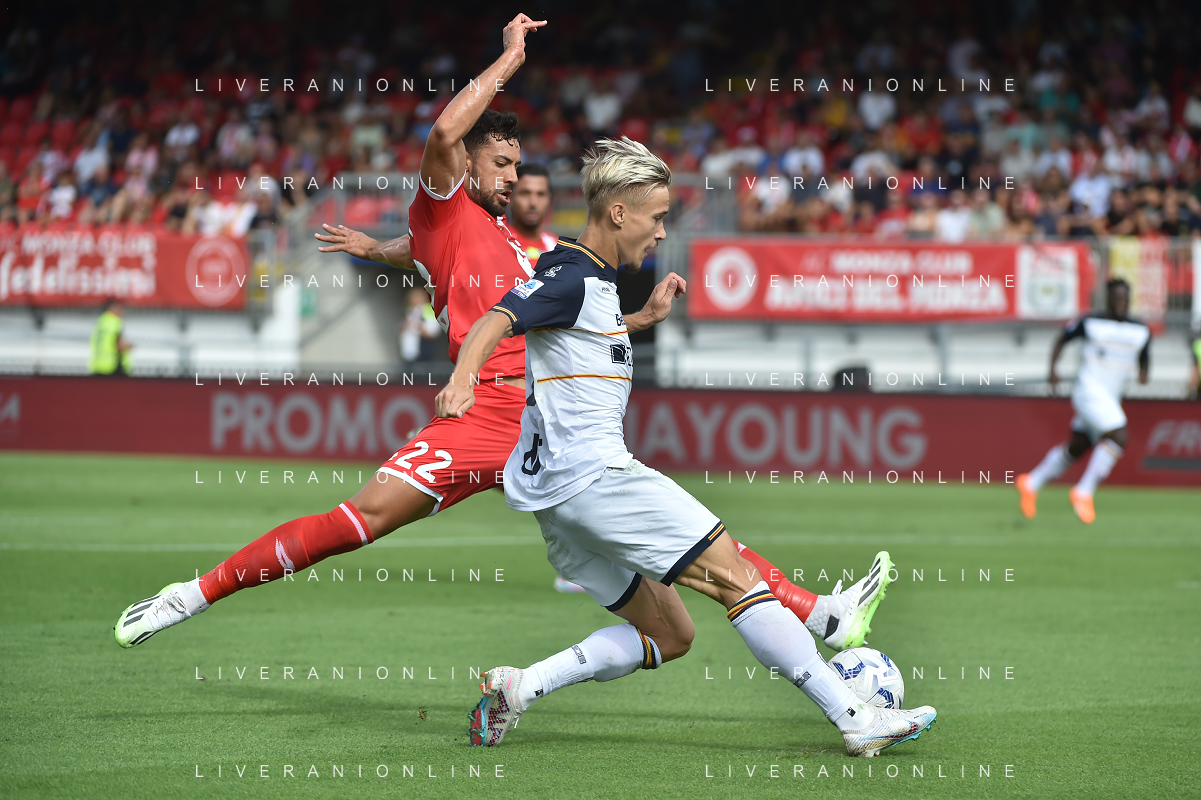 TVRG Monza vs Lecce nella foto Lorenzo Colombo (Monza) SX e Federico Baschirotto (Lecce) DX Monza 17-09-2023 U-Power Stadium Campionato Serie A TIM - 4a giornata foto Roberto Garavaglia/ag. Aldo Liverani sas