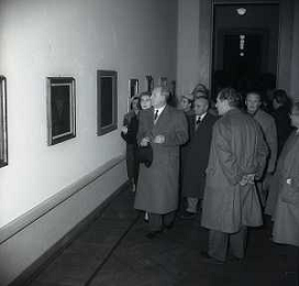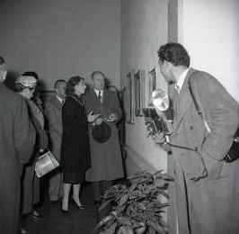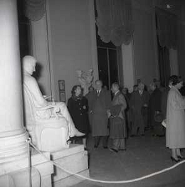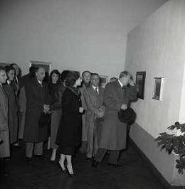 NEG-RETROSPETTIVA GIUSEPPE SARAGAT POLITICO NELLA FOTO GIUSEPPE SARAGAT A ROMA NELL'ANNO 1950 ALLA MOSTRA DEL PITTORE GINO ROSSI FOTO SANDRO VESPASIANI-AG ALDO LIVERANI SAS