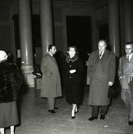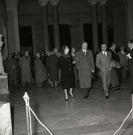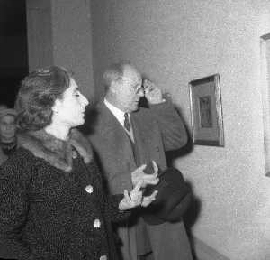 NEG-RETROSPETTIVA GIUSEPPE SARAGAT POLITICO NELLA FOTO GIUSEPPE SARAGAT CON LA SOPRAINTENDENTE PALMA BUCARELLI A ROMA NELL'ANNO 1950 ALLA MOSTRA DEL PITTORE GINO ROSSI FOTO SANDRO VESPASIANI-AG ALDO LIVERANI SAS