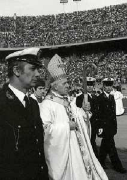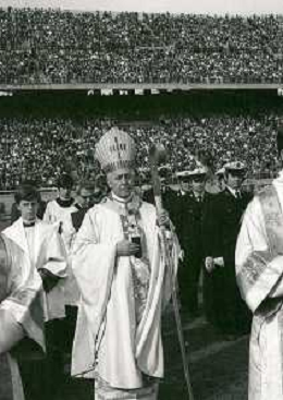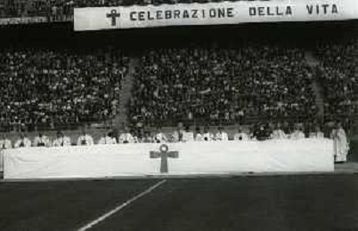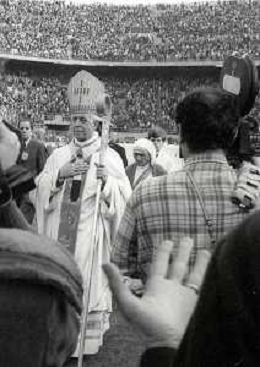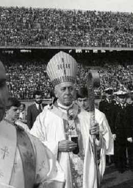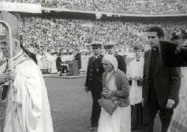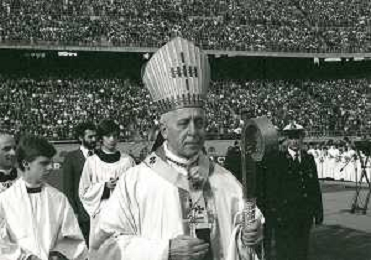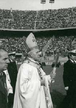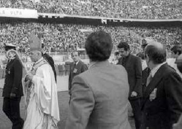 NEG-RETROSPETTIVA CARDINALE GIOVANNI COLOMBO NELLA FOTO IL CARDINALE GIOVANNI COLOMBO A MILANO NELL'ANNO 1977 ALLO STADIO MEAZZA CON MDRE TERESA DI CALCUTTA AG ALDO LIVERANI SAS