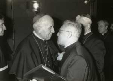 NEG-RETROSPETTIVA CARDINALE GIOVANNI COLOMBO NELLA FOTO IL CARDINALE GIOVANNI COLOMBO A MILANO NELL'ANNO 1982 AL CONGRESSO EPISCOPALE CON IL CARDINALE CARLO MARIA MARTINI AG ALDO LIVERANI SAS