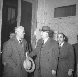 NEG-RETROSPETTIVA GIUSEPPE SARAGAT POLITICO NELLA FOTO GIUSEPPE SARAGAT CON ITALO PIETRA NELL'ANNO 1956 A ROMA FOTO SANDRO VESPASIANI-AG ALDO LIVERANI SAS