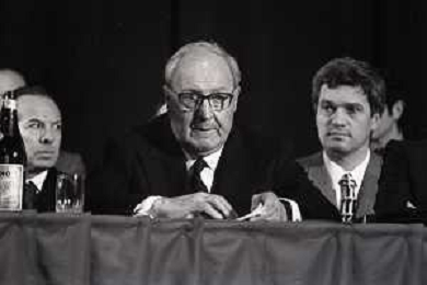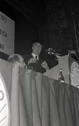 NEG-RETROSPETTIVA GIUSEPPE SARAGAT POLITICO NELLA FOTO GIUSEPPE SARAGAT A ROMA NELL'ANNO 1972 AL CONGRESSO DEL PSDI AG ALDO LIVERANI SAS