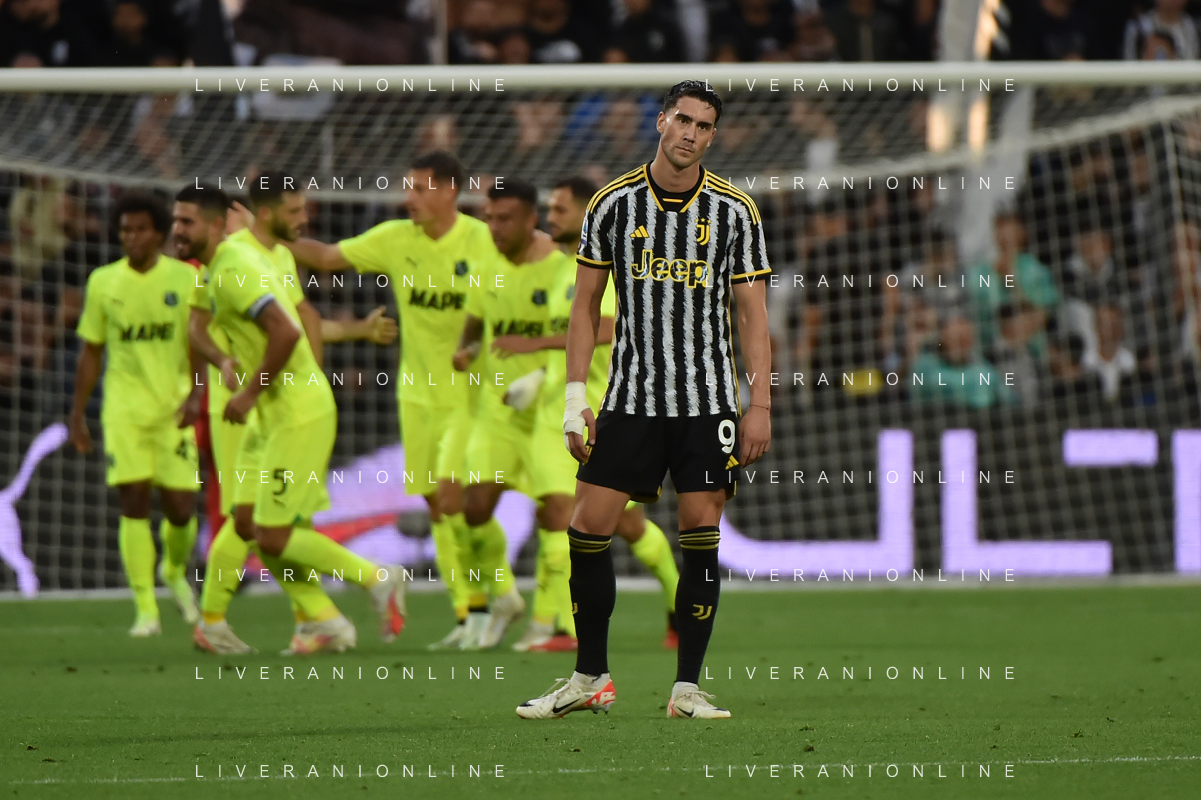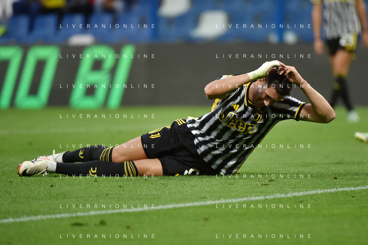 Sassuolo vs Juventus nella foto Dusan Vlahovic (Juventus) delusione Reggio Emilia 23-09-2023 Mapei Stadium - Stadio Città del Tricolore Campionato Serie A TIM - 5a giornata foto Roberto Garavaglia/ag. Aldo Liverani sas /AGENZIA ALDO LIVERANI SAS