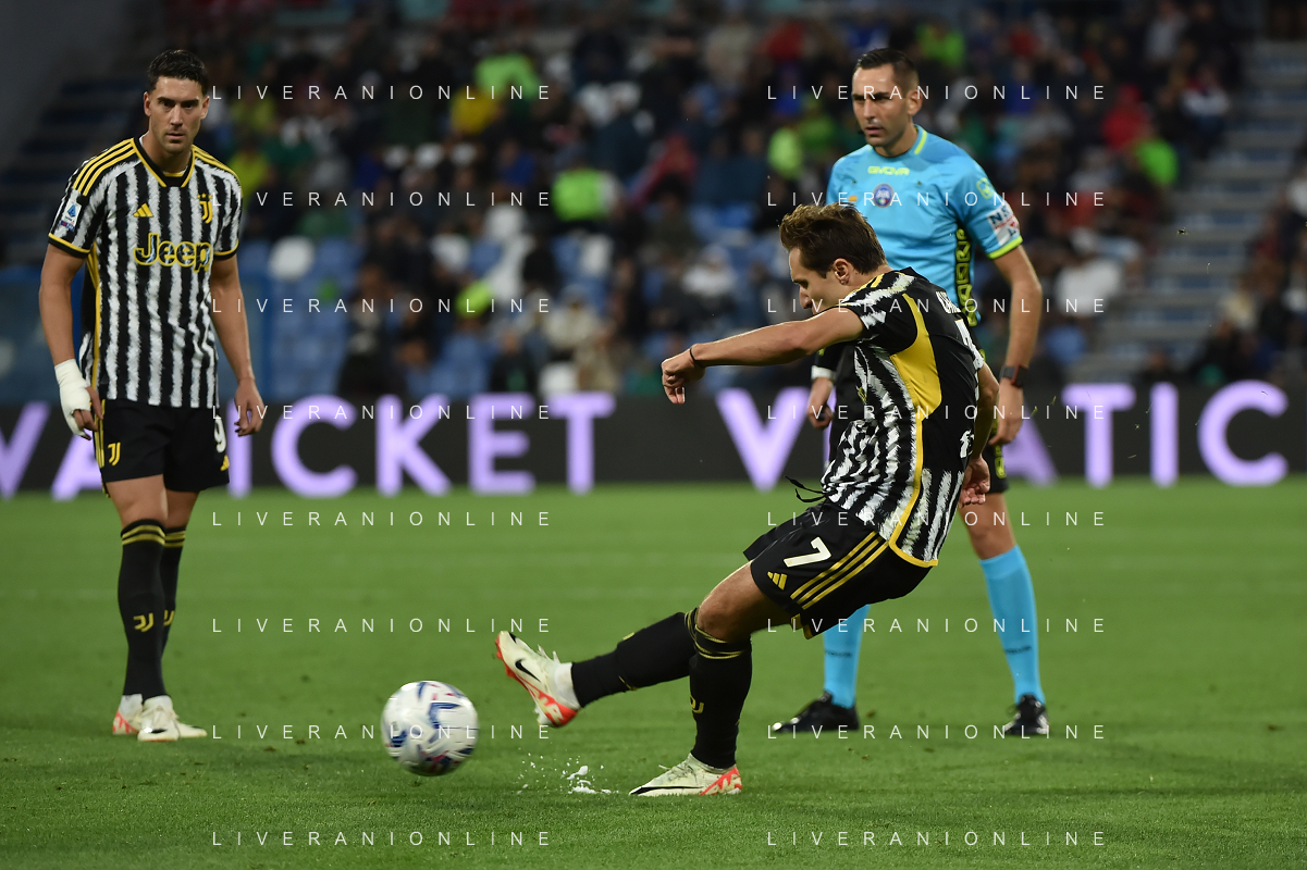 Sassuolo vs Juventus nella foto Federico Chiesa (Juventus) vicino al gol su punizione Reggio Emilia 23-09-2023 Mapei Stadium - Stadio Città del Tricolore Campionato Serie A TIM - 5a giornata foto Roberto Garavaglia/ag. Aldo Liverani sas /AGENZIA ALDO LIVERANI SAS