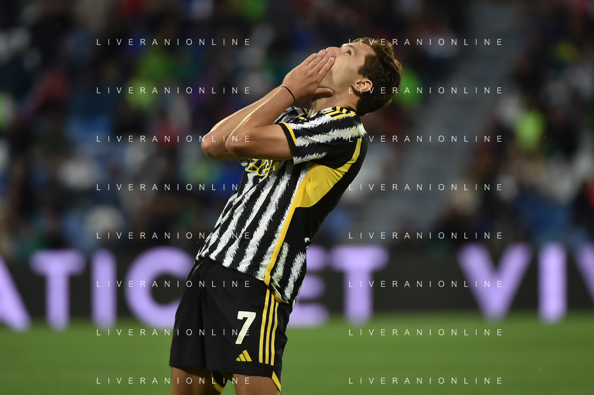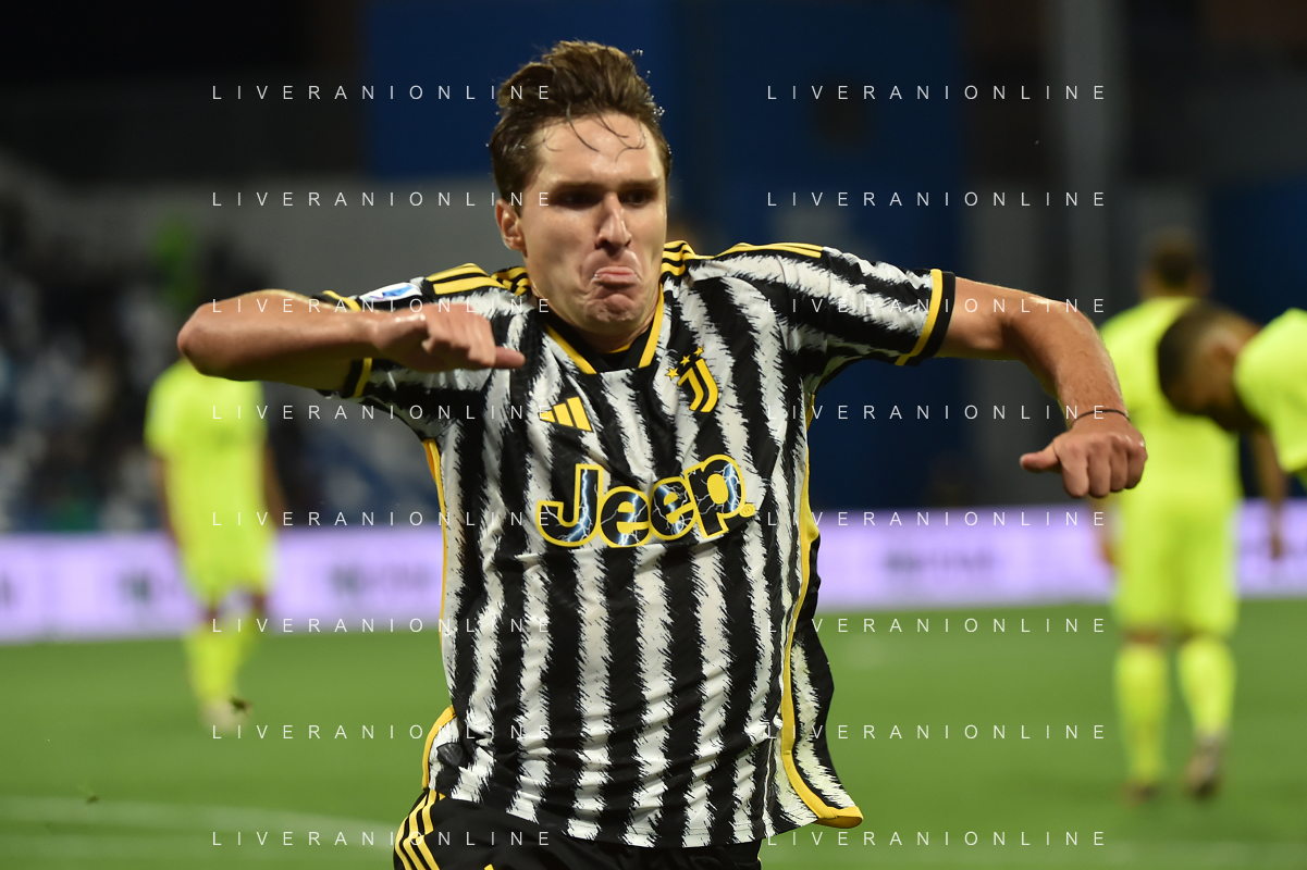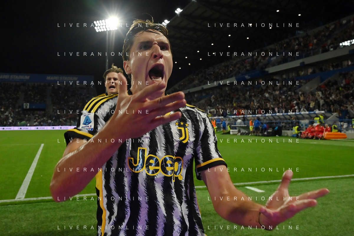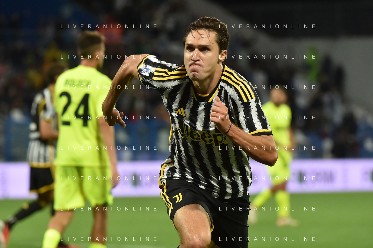 Sassuolo vs Juventus nella foto Federico Chiesa (Juventus) esulta dopo il gol del 2 a 2 Reggio Emilia 23-09-2023 Mapei Stadium - Stadio Città del Tricolore Campionato Serie A TIM - 5a giornata foto Roberto Garavaglia/ag. Aldo Liverani sas /AGENZIA ALDO LIVERANI SAS