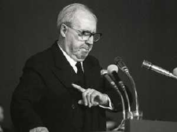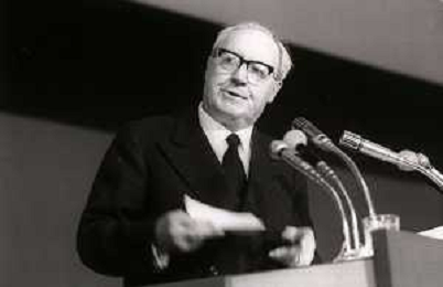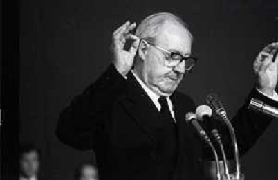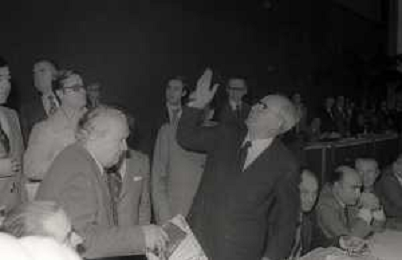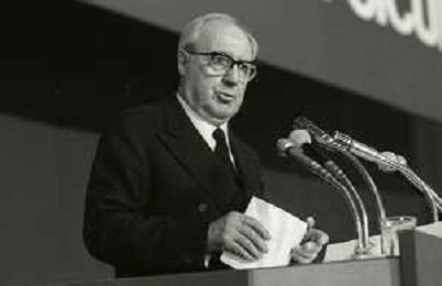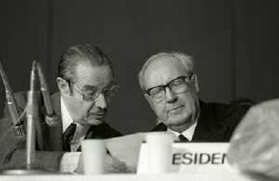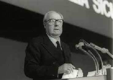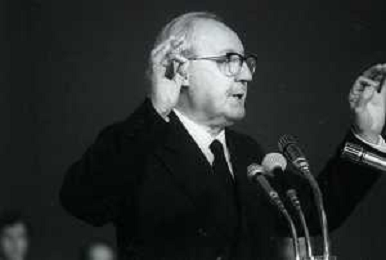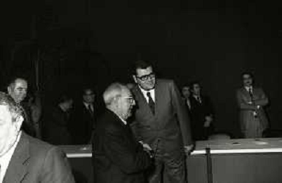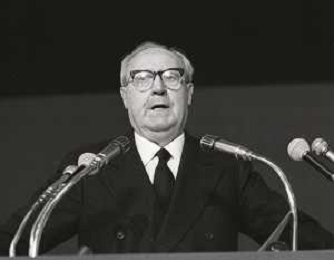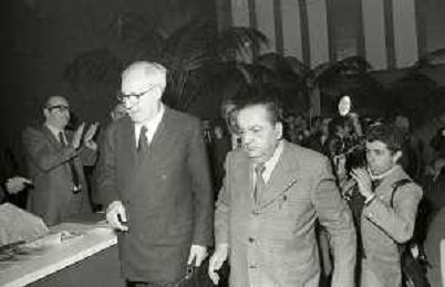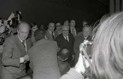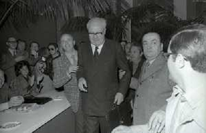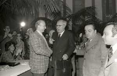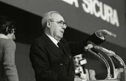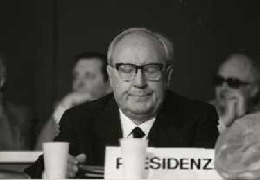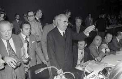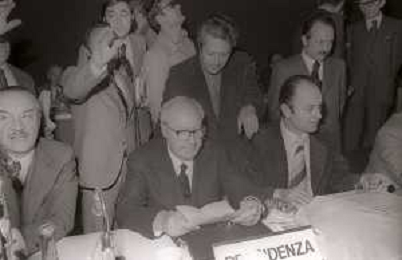 NEG-RETROSPETTIVA GIUSEPPE SARAGAT POLITICO NELLA FOTO GIUSEPPE SARAGAT A GENOVA NELL'ANNO 1974 AG ALDO LIVERANI SAS