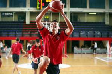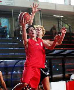 IMOLA 23 09 2023 BASKET TROFEO ANDREA CEMBALLI NELLA FOTO DURANTE L'INTERVALLO PORTIERE DELL'IMOLESE CALCIO TOMMASO NANETTI GIOCA BASKET CON I SUOI COMPAGNI ©SANNA/AGENZIA ALDO LIVERANI SAS