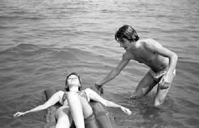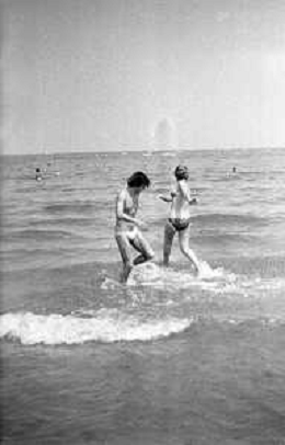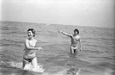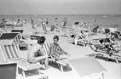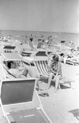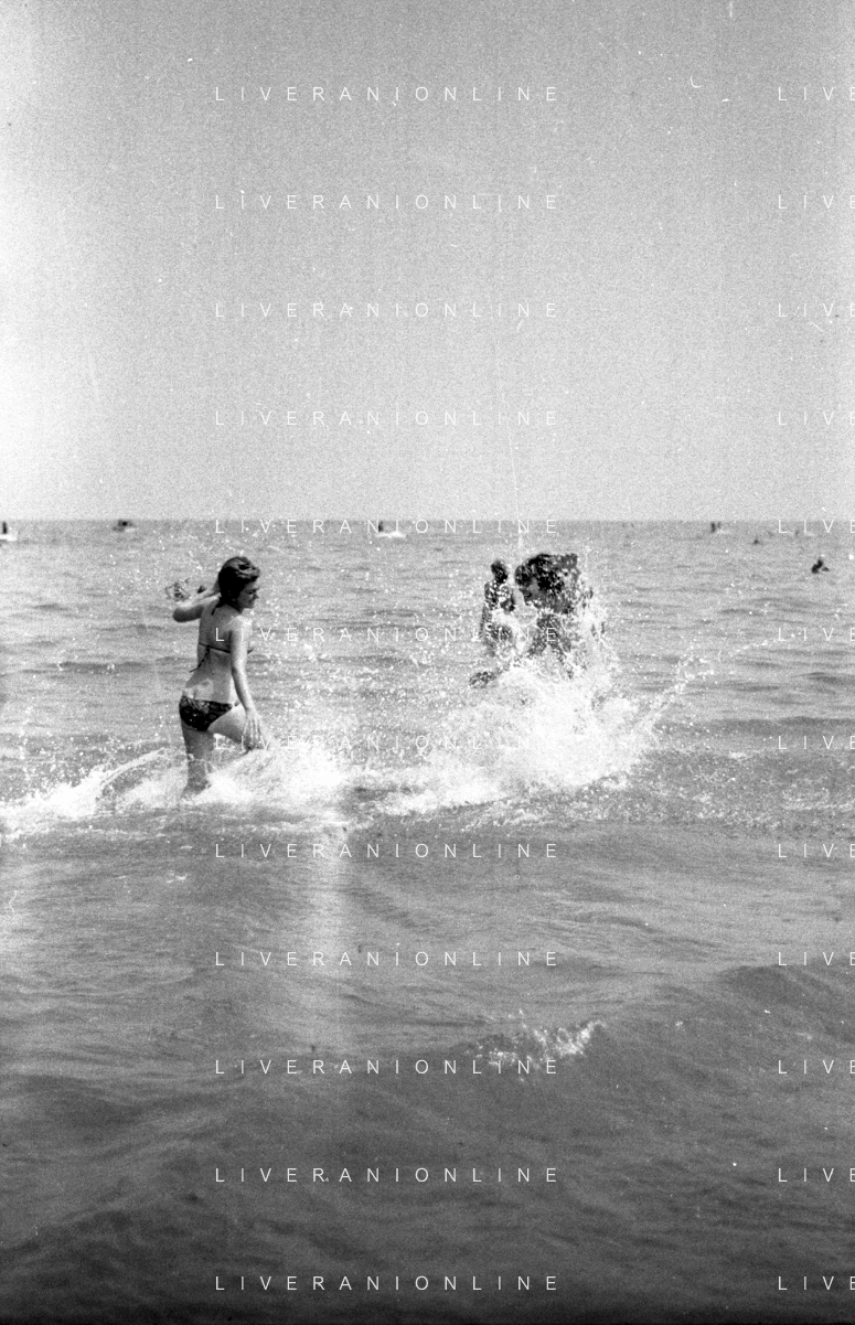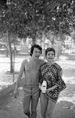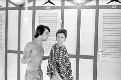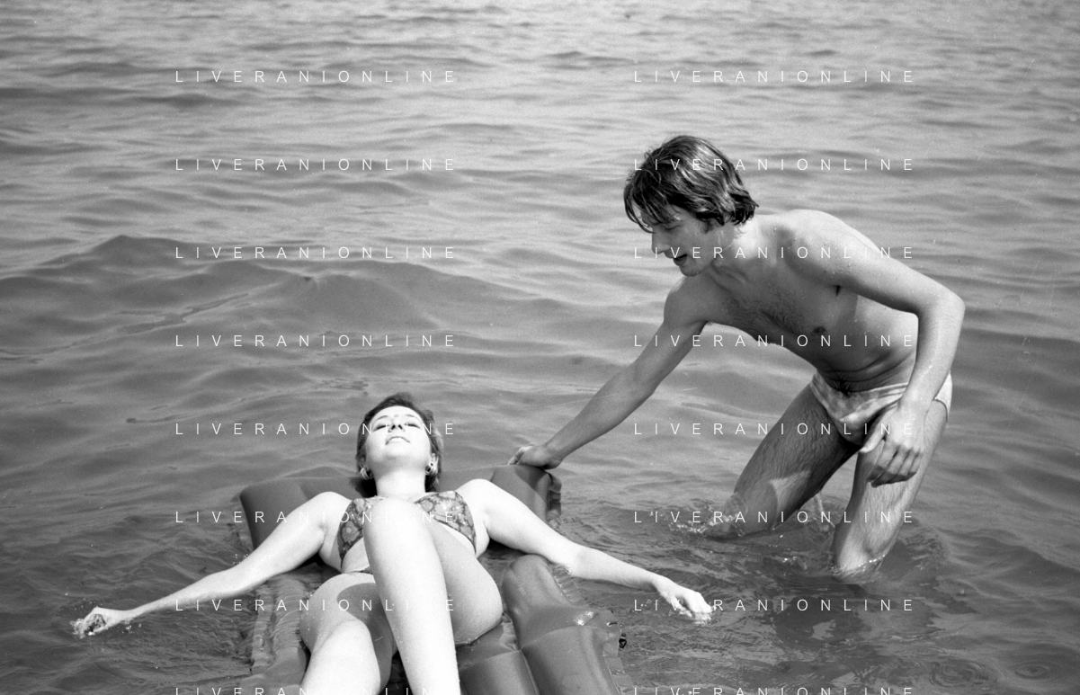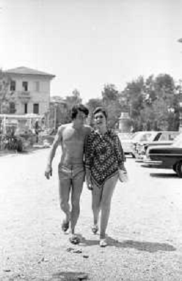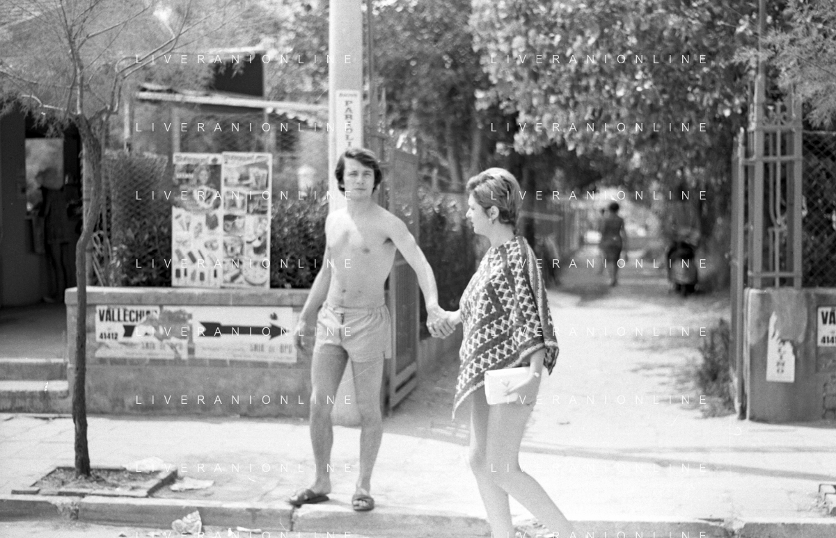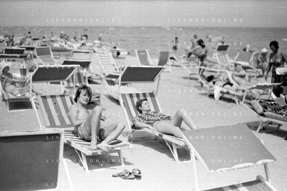 Neg- RETROSPETTIVA LORETTA GOGGI ATTRICE E CANTANTE NELLA FOTO CON L'ATTORE ALDO REGGIANI AL MARE SULLA SPIAGGIA DI RICCIONE NELL'ANNO 1969 AG ALDO LIVERANI SAS