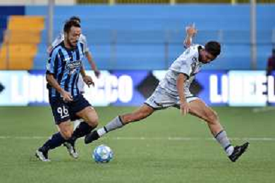 TVRG Lecco vs FeralpiSalo' nella foto Andrija Novakovich (Lecco) tra Alessandro Pilati (FeralpiSalo') e Luca Fiordilino (FeralpiSalo') Lecco 26-09-2023 Stadio Rigamonti Ceppi Campionato Serie BKT - 7a giornata foto Roberto Garavaglia/ag. Aldo Liverani sas