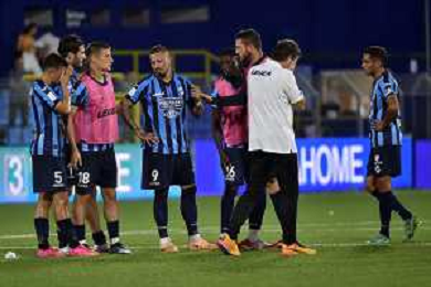 TVRG Lecco vs FeralpiSalo' nella foto esultanza FeralpiSalo' dopo il gol dell'1 a 0 Lecco 26-09-2023 Stadio Rigamonti Ceppi Campionato Serie BKT - 7a giornata foto Roberto Garavaglia/ag. Aldo Liverani sas