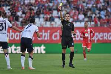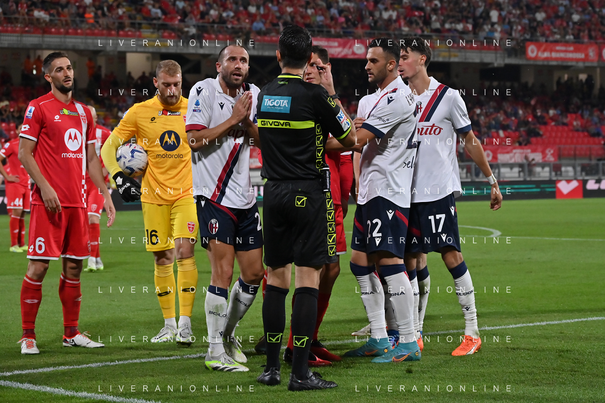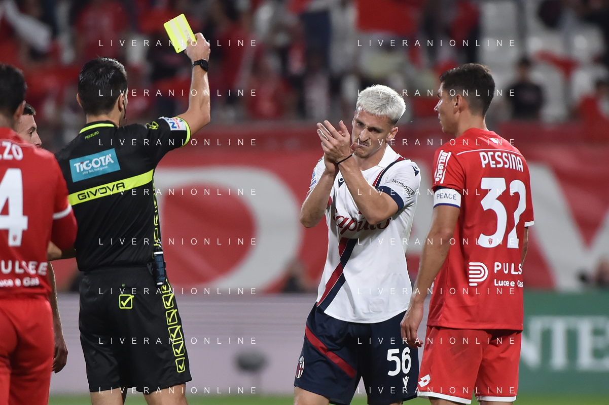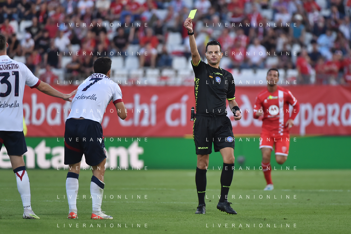 TVRG Monza vs Bologna nella foto l'arbitro Ivano Pezzuto di Lecce ammonisce Riccardo Orsolini (Bologna) Monza 28-09-2023 U-Power Stadium Campionato Serie A TIM - 6a giornata foto Roberto Garavaglia/ag. Aldo Liverani sas/AGENZIA ALDO LIVERANI SAS