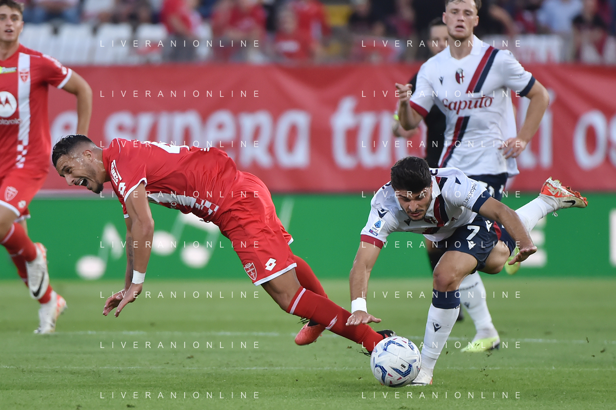 TVRG Monza vs Bologna nella foto Dany Mota Carvalho (Monza) atterrato da Riccardo Orsolini (Bologna) Monza 28-09-2023 U-Power Stadium Campionato Serie A TIM - 6a giornata foto Roberto Garavaglia/ag. Aldo Liverani sas/AGENZIA ALDO LIVERANI SAS