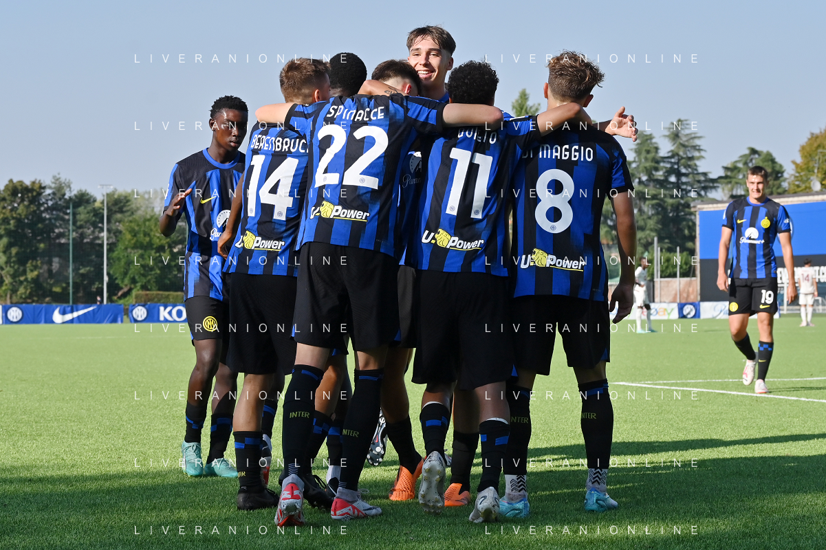 TVRG Inter vs Torino nella foto esultanza Inter dopo il gol del 4 a 0 Milano 29-09-2023 Konami Youth Development Centre in memoria di Giacinto Facchetti Campionato Primavera 1 TIM - 5a giornata foto Roberto Garavaglia/ag. Aldo Liverani sas