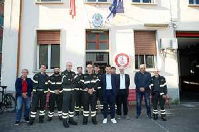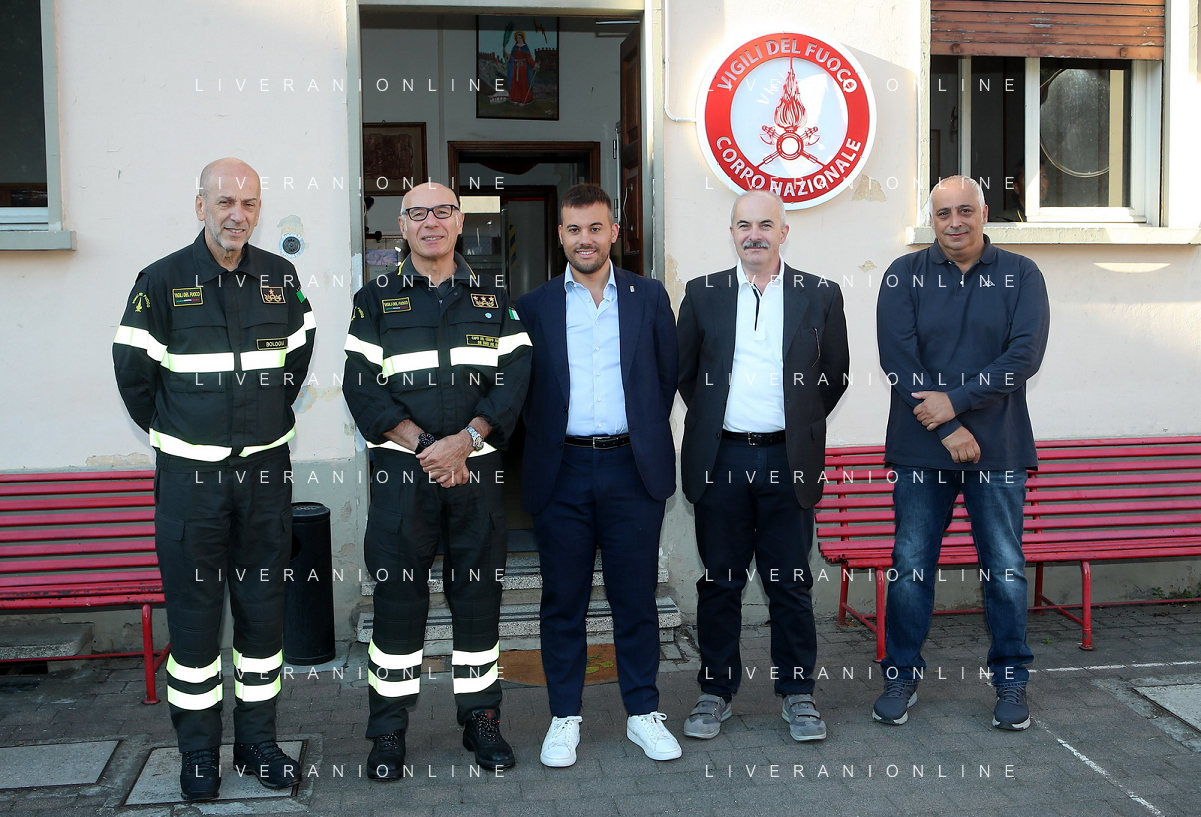 IMOLA 30 09 2023 IL COMMANDANTE NAZIONALE CARLO DALL'OPPIO E COMMANDANTE PROVINCIALE DEI VGDF DI BOLONA CALOGERO TURTURICI VISITANO IL DISTACCAMENTO DEI VIGILI DEL FUOCO DI IMOLA NELLA FOTO COMM.PROVINCALI DI BOLOGNA CALOGERO TURTURICI, COMM.NAZIONALE CARLO DALL'OPPIO, SINDACO DI IMOLA MARCO PANIERI,LAMBERTO LAMBERTINI FONDAZIONE E ANDREA BOLOGNESI COMM DEL DISTACAMENTO DI IMOLA FOTO GIANNI SANNA-AG ALDO LIVERANI SAS