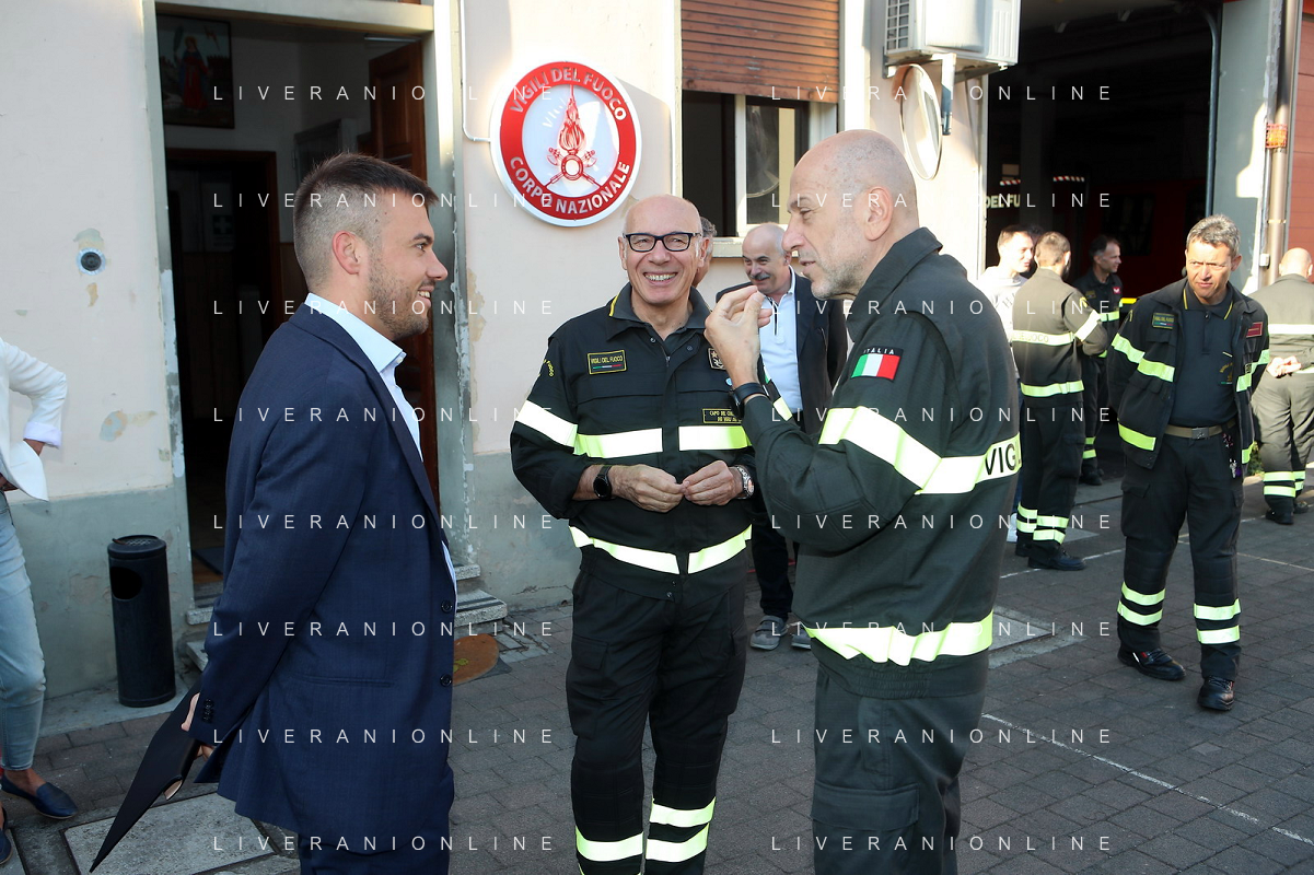IMOLA 30 09 2023 IL COMMANDANTE NAZIONALE CARLO DALL'OPPIO E COMMANDANTE PROVINCIALE DEI VGDF DI BOLONA CALOGERO TURTURICI VISITANO IL DISTACCAMENTO DEI VIGILI DEL FUOCO DI IMOLA - 3 file