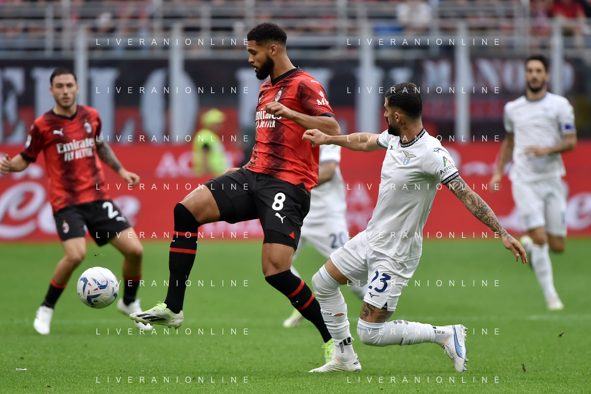 Milan vs Lazio nella foto Yunus Musah (Milan) e Mattia Zaccagni (Lazio) Milano 30-09-2023 Stadio Giuseppe Meazza - San Siro Campionato Serie A TIM - 7a giornata foto Roberto Garavaglia/ag. Aldo Liverani sas/AGENZIA ALDO LIVERANI SAS