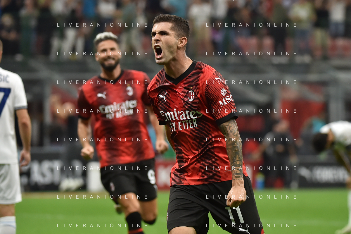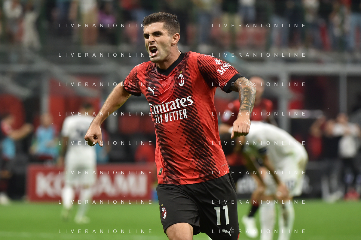 Milan vs Lazio nella foto Christian Mate Pulisic (Milan) segna il gol dell'1 a 0 Milano 30-09-2023 Stadio Giuseppe Meazza - San Siro Campionato Serie A TIM - 7a giornata foto Roberto Garavaglia/ag. Aldo Liverani sas/AGENZIA ALDO LIVERANI SAS