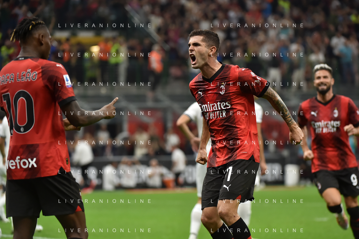 Milan vs Lazio nella foto Christian Mate Pulisic (Milan) esulta dopo il gol dell'1 a 0 Milano 30-09-2023 Stadio Giuseppe Meazza - San Siro Campionato Serie A TIM - 7a giornata foto Roberto Garavaglia/ag. Aldo Liverani sas/AGENZIA ALDO LIVERANI SAS