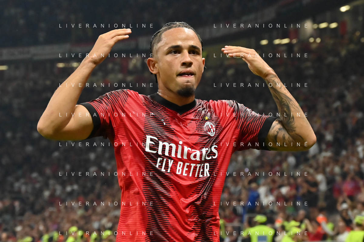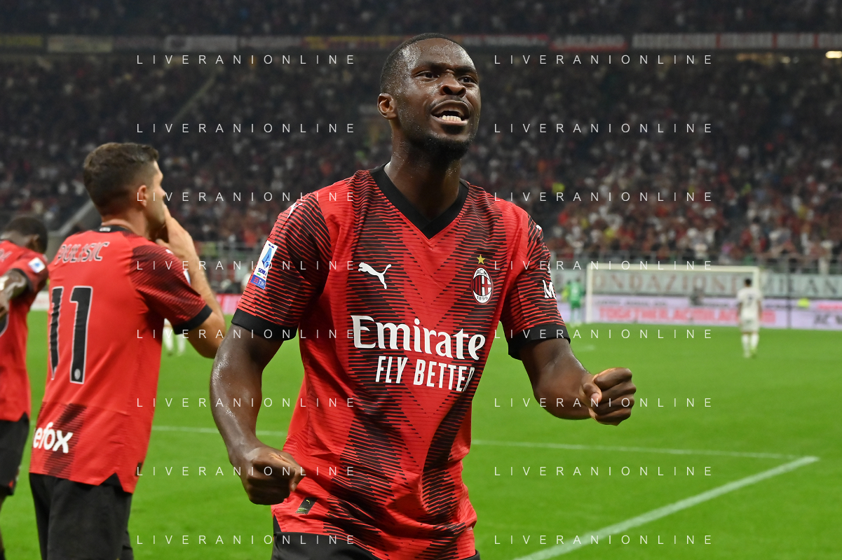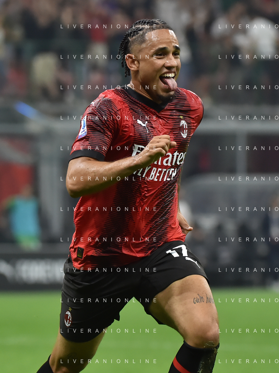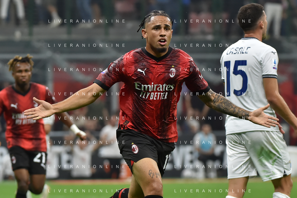 Milan vs Lazio nella foto Noah Okafor (Milan) esulta dopo il gol del 2 a 0 Milano 30-09-2023 Stadio Giuseppe Meazza - San Siro Campionato Serie A TIM - 7a giornata foto Roberto Garavaglia/ag. Aldo Liverani sas