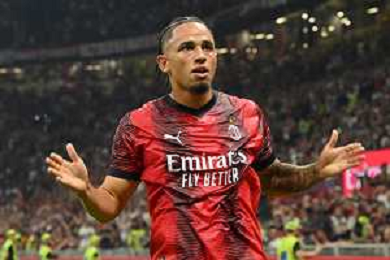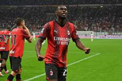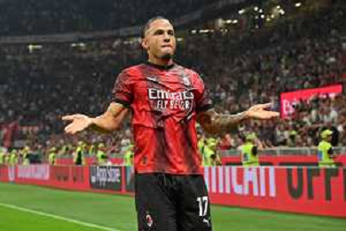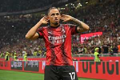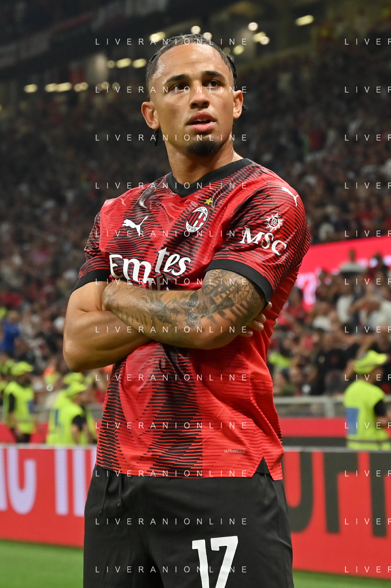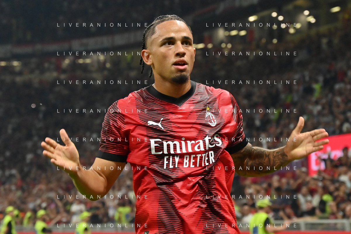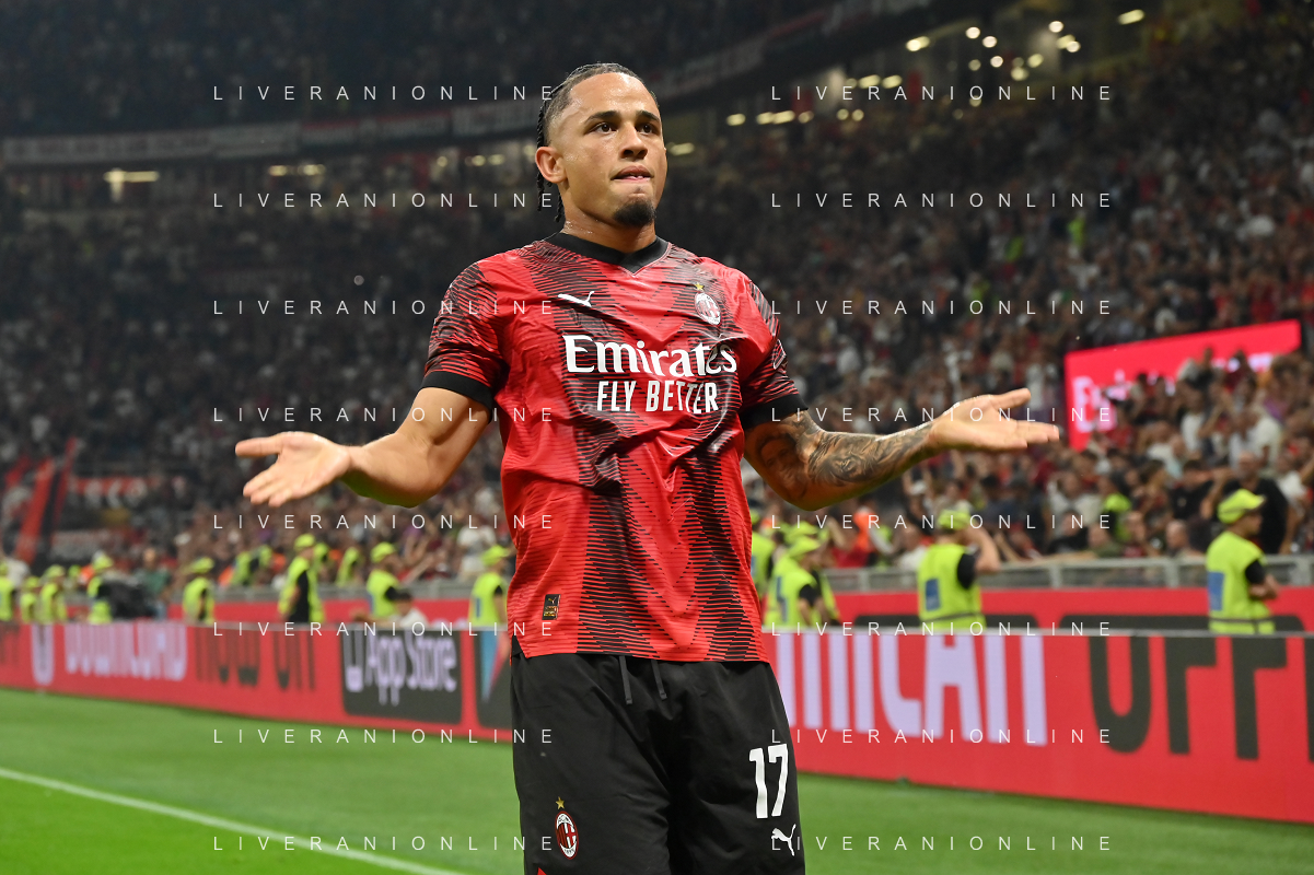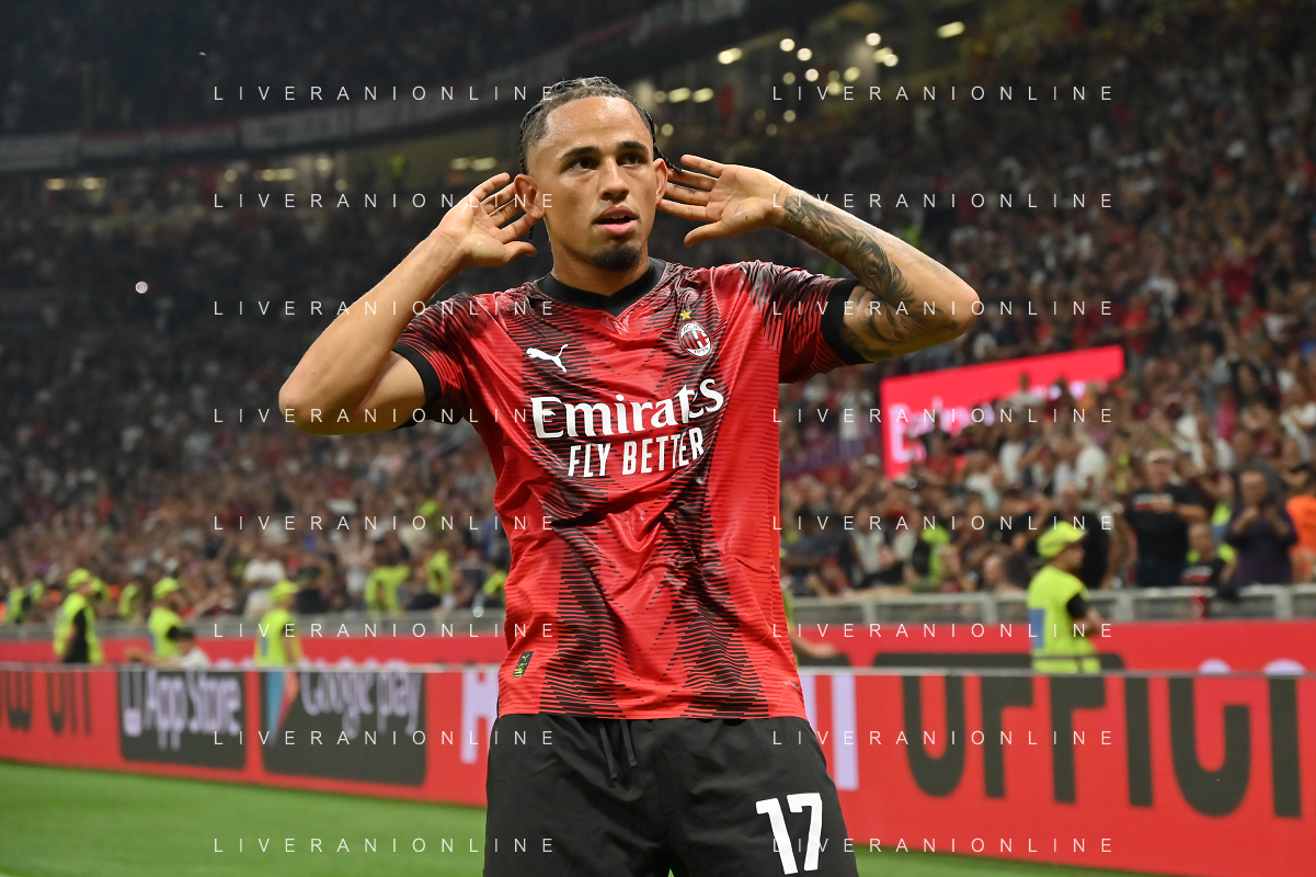 Milan vs Lazio nella foto Noah Okafor (Milan) esulta dopo il gol del 2 a 0 Milano 30-09-2023 Stadio Giuseppe Meazza - San Siro Campionato Serie A TIM - 7a giornata foto Roberto Garavaglia/ag. Aldo Liverani sas