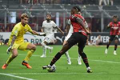 Milan vs Lazio nella foto Rafael Leao (Milan) serve a Noah Okafor (Milan) la palla per il gol del 2 a 0 Milano 30-09-2023 Stadio Giuseppe Meazza - San Siro Campionato Serie A TIM - 7a giornata foto Roberto Garavaglia/ag. Aldo Liverani sas/AGENZIA ALDO LIVERANI SAS