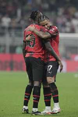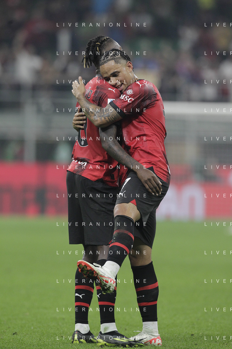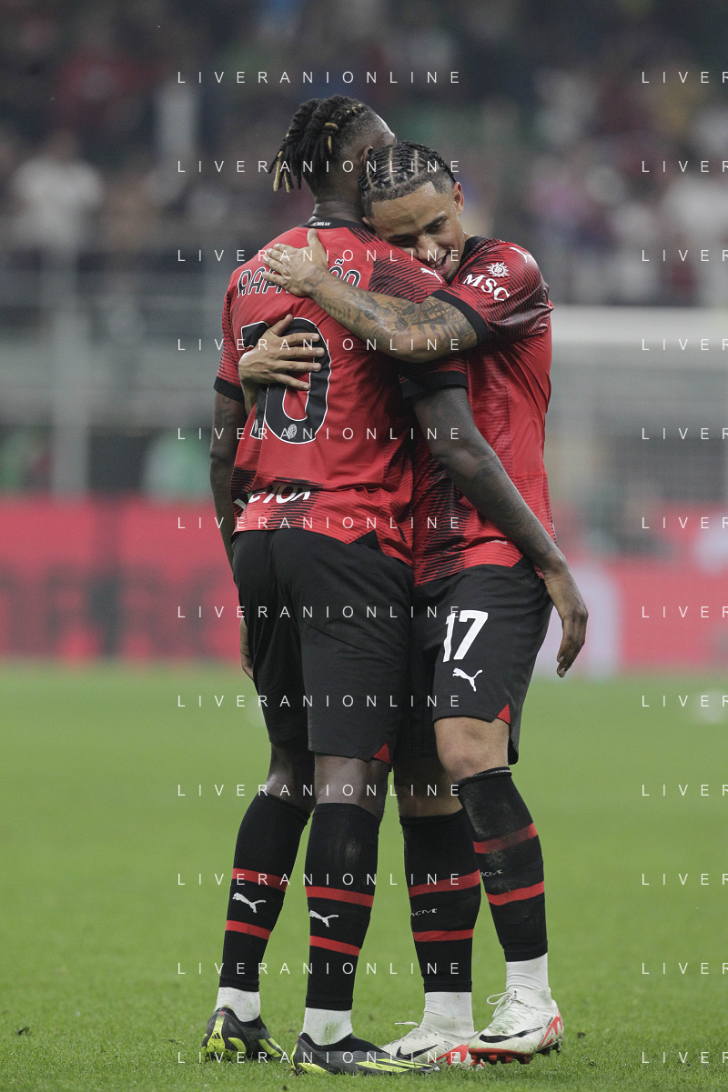 Milan vs Lazio nella foto Noah Okafor (Milan) e Rafael Leao (Milan) esultano dopo il gol del 2 a 0 Milano 30-09-2023 Stadio Giuseppe Meazza - San Siro Campionato Serie A TIM - 7a giornata foto Roberto Garavaglia/ag. Aldo Liverani sas/AGENZIA ALDO LIVERANI SAS