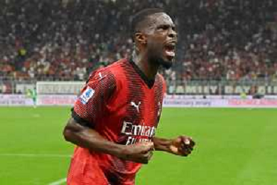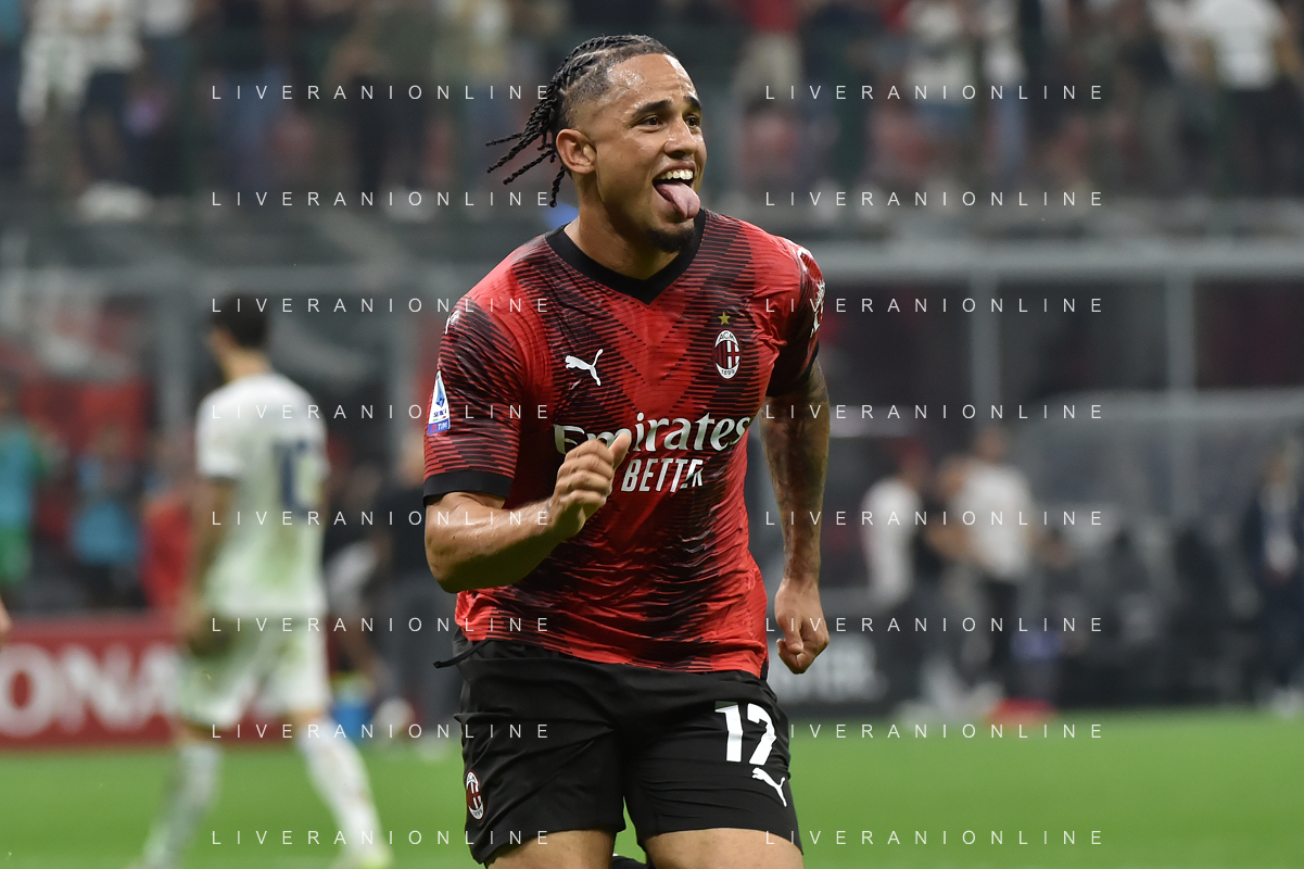 Milan vs Lazio nella foto Noah Okafor (Milan) esulta dopo il gol del 2 a 0 Milano 30-09-2023 Stadio Giuseppe Meazza - San Siro Campionato Serie A TIM - 7a giornata foto Roberto Garavaglia/ag. Aldo Liverani sas/AGENZIA ALDO LIVERANI SAS