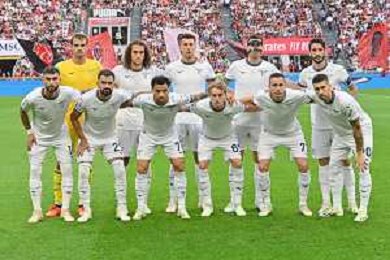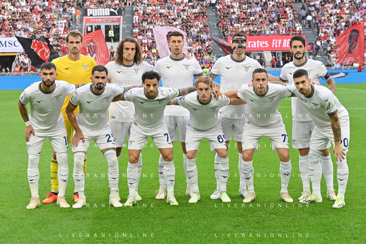 Milan vs Lazio nella foto formazione Lazio, in piedi da SX Ivan Provedel, Matteo Elias Guendouzi, Nicolo' Casale, Alessio Romagnoli e Luis Alberto Romero Alconchel; in basso da SX Valentin Mariano Castellanos Taty, Elseid Hysaj, Felipe Anderson Pereira Gomes, Nicolo' Rovella, Adam Marusic e Mattia Zaccagni Milano 30-09-2023 Stadio Giuseppe Meazza - San Siro Campionato Serie A TIM - 7a giornata foto Roberto Garavaglia/ag. Aldo Liverani sas