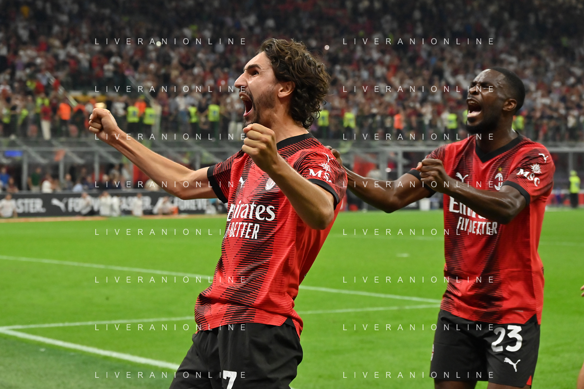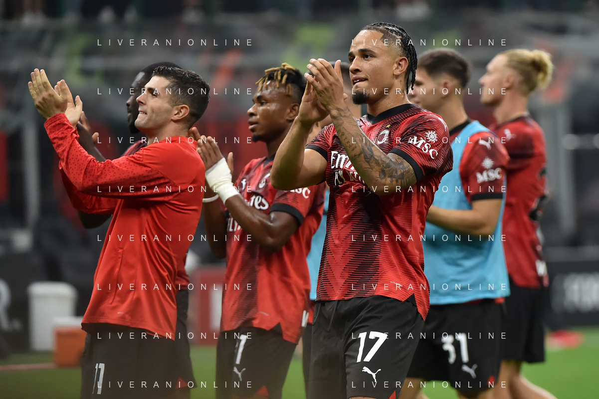 Milan vs Lazio nella foto esultanza finale Milan Milano 30-09-2023 Stadio Giuseppe Meazza - San Siro Campionato Serie A TIM - 7a giornata foto Roberto Garavaglia/ag. Aldo Liverani sas/AGENZIA ALDO LIVERANI SAS