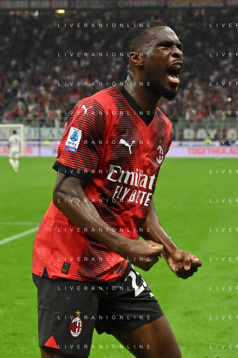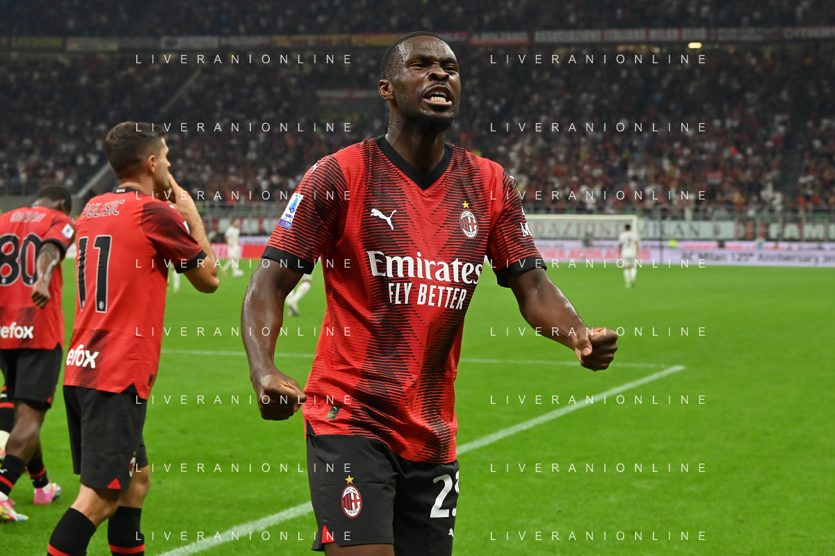 Milan vs Lazio nella foto Fikayo Tomori (Milan) esulta dopo il gol dell'1 a 0 di Christian Mate Pulisic (Milan) Milano 30-09-2023 Stadio Giuseppe Meazza - San Siro Campionato Serie A TIM - 7a giornata foto Roberto Garavaglia/ag. Aldo Liverani sas/AGENZIA ALDO LIVERANI SAS