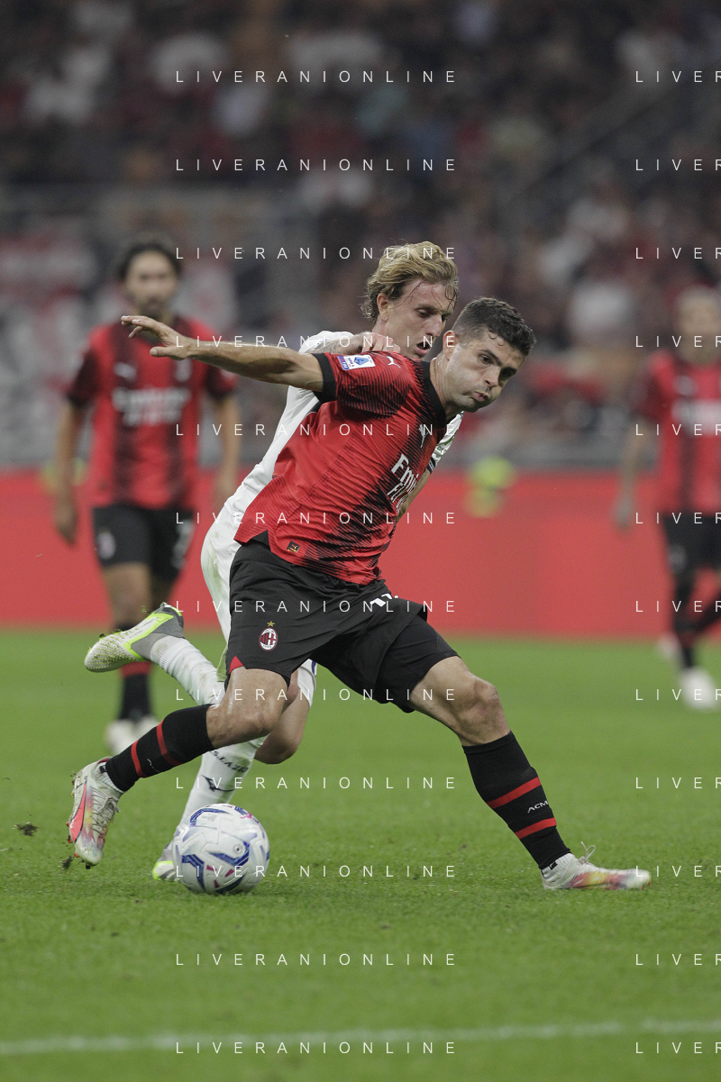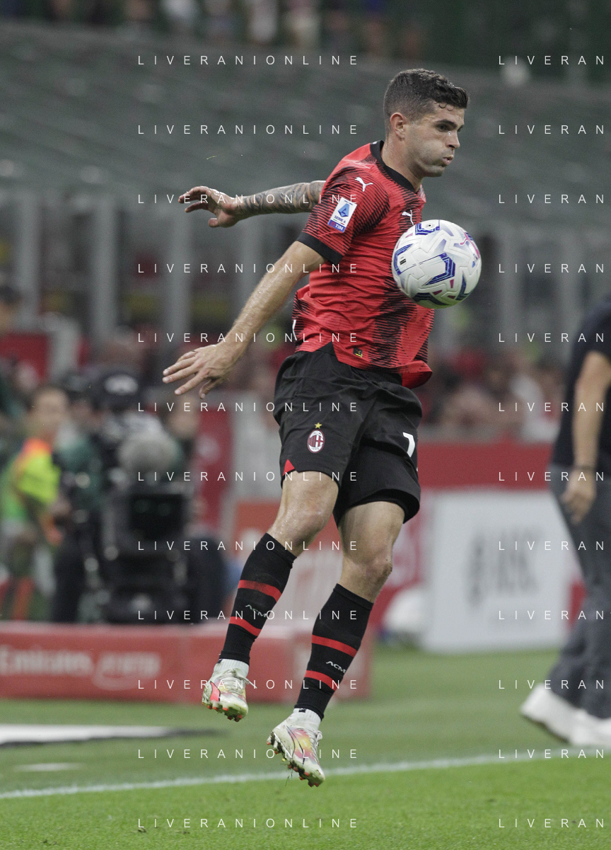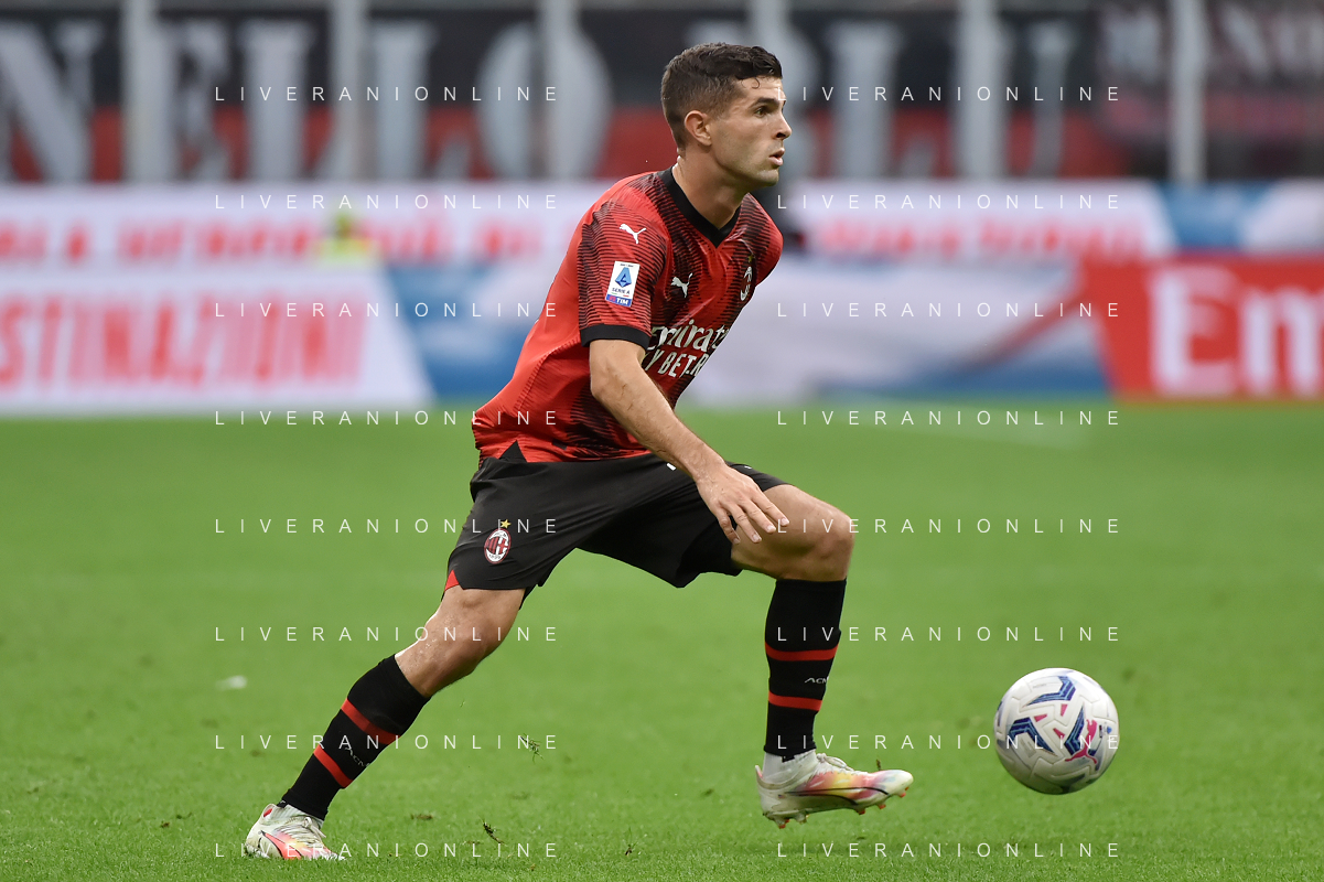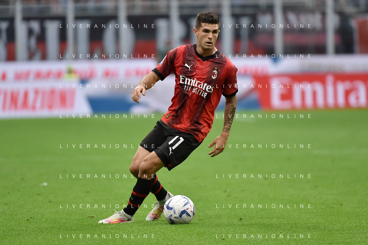 Milan vs Lazio nella foto Christian Mate Pulisic (Milan) Milano 30-09-2023 Stadio Giuseppe Meazza - San Siro Campionato Serie A TIM - 7a giornata foto Roberto Garavaglia/ag. Aldo Liverani sas/AGENZIA ALDO LIVERANI SAS