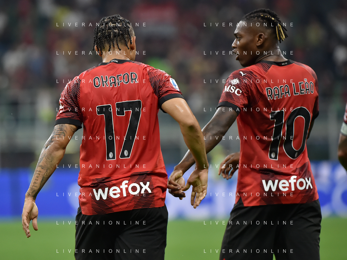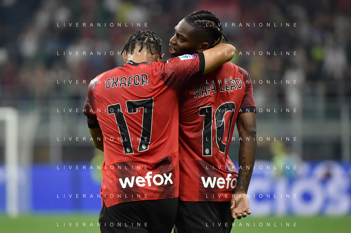 Milan vs Lazio nella foto Noah Okafor (Milan) SX e Rafael Leao (Milan) DX Milano 30-09-2023 Stadio Giuseppe Meazza - San Siro Campionato Serie A TIM - 7a giornata foto Roberto Garavaglia/ag. Aldo Liverani sas