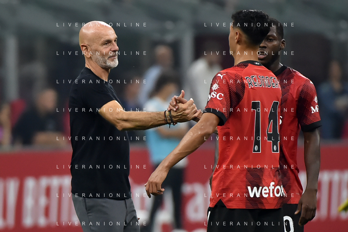 Milan vs Lazio nella foto Stefano Pioli allenatore Milan e Tijjani Reijnders (Milan) a fine gara Milano 30-09-2023 Stadio Giuseppe Meazza - San Siro Campionato Serie A TIM - 7a giornata foto Roberto Garavaglia/ag. Aldo Liverani sas/AGENZIA ALDO LIVERANI SAS
