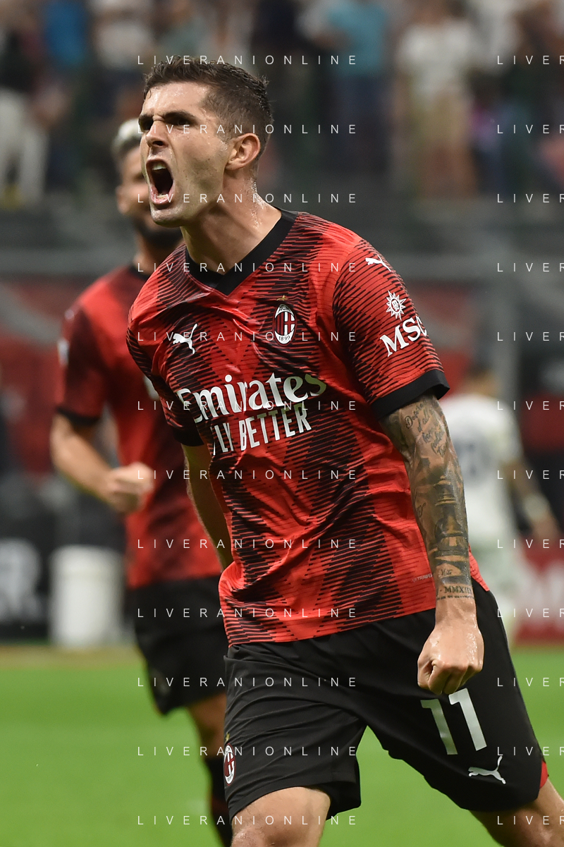 Milan vs Lazio nella foto Christian Mate Pulisic (Milan) esulta dopo il gol dell'1 a 0 Milano 30-09-2023 Stadio Giuseppe Meazza - San Siro Campionato Serie A TIM - 7a giornata foto Roberto Garavaglia/ag. Aldo Liverani sas