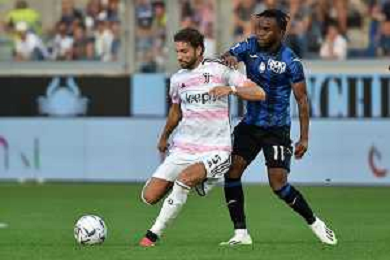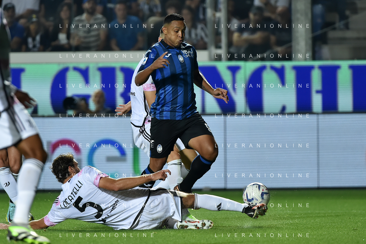 Atalanta vs Juventus nella foto Luis Muriel (Atalanta) fermato da Manuel Locatelli (Juventus) Bergamo 01-10-2023 Gewiss Stadium - Stadio Atleti Azzurri d'Italia Campionato Serie A TIM - 7a giornata foto Roberto Garavaglia/ag. Aldo Liverani sas