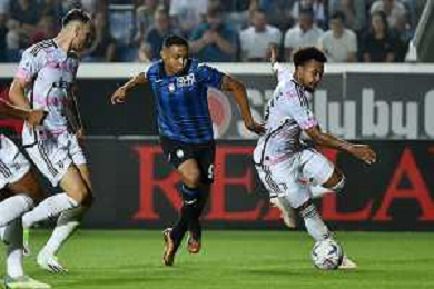 Atalanta vs Juventus nella foto Charles de Ketelaere (Atalanta) e Andrea Cambiaso (Juventus) Bergamo 01-10-2023 Gewiss Stadium - Stadio Atleti Azzurri d'Italia Campionato Serie A TIM - 7a giornata foto Roberto Garavaglia/ag. Aldo Liverani sas