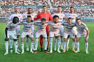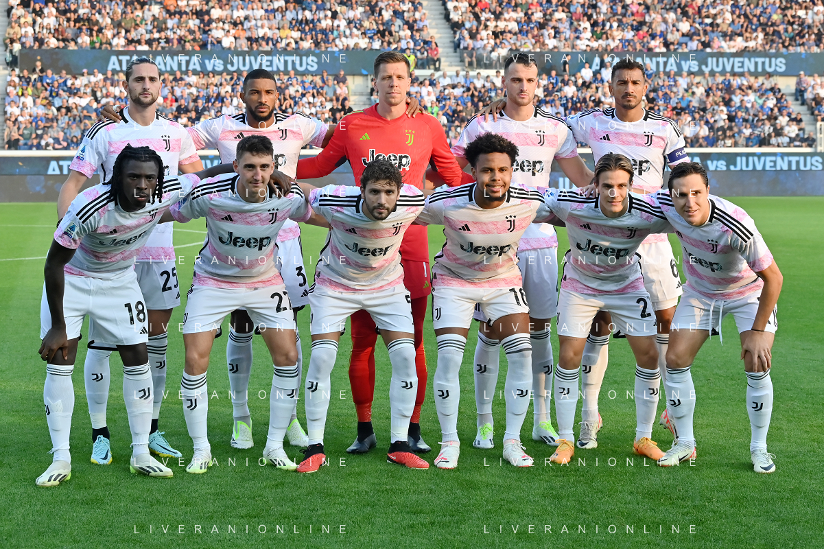 Atalanta vs Juventus nella foto formazione Juventus, in piedi da SX Adrien Rabiot, Gleison Bremer, Wojciech Szczesny, Federico Gatti e Danilo Luiz Da Silva; in basso da SX Moise Kean, Andrea Cambiaso, Manuel Locatelli, Weston McKennie, Nicolo' Fagioli e Federico Chiesa Bergamo 01-10-2023 Gewiss Stadium - Stadio Atleti Azzurri d'Italia Campionato Serie A TIM - 7a giornata foto Roberto Garavaglia/ag. Aldo Liverani sas