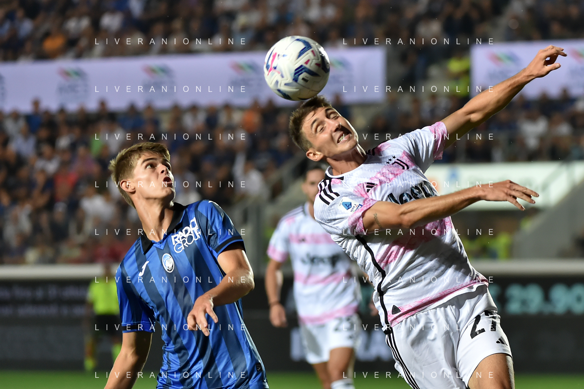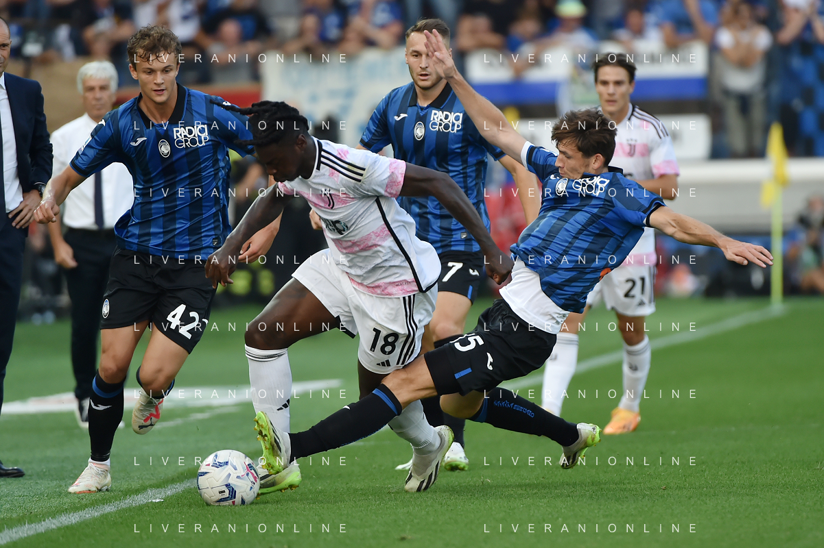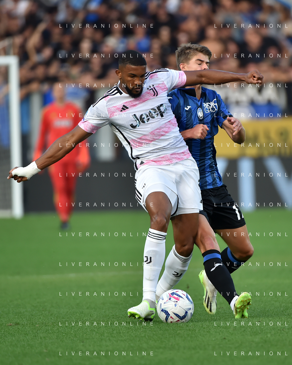 Atalanta vs Juventus nella foto Weston McKennie (Juventus) e Matteo Ruggeri (Atalanta) Bergamo 01-10-2023 Gewiss Stadium - Stadio Atleti Azzurri d'Italia Campionato Serie A TIM - 7a giornata foto Roberto Garavaglia/ag. Aldo Liverani sas
