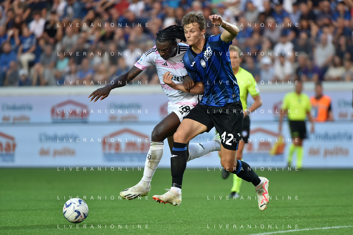 Atalanta vs Juventus nella foto Moise Kean (Juventus) e Giorgio Scalvini (Atalanta) Bergamo 01-10-2023 Gewiss Stadium - Stadio Atleti Azzurri d'Italia Campionato Serie A TIM - 7a giornata foto Roberto Garavaglia/ag. Aldo Liverani sas