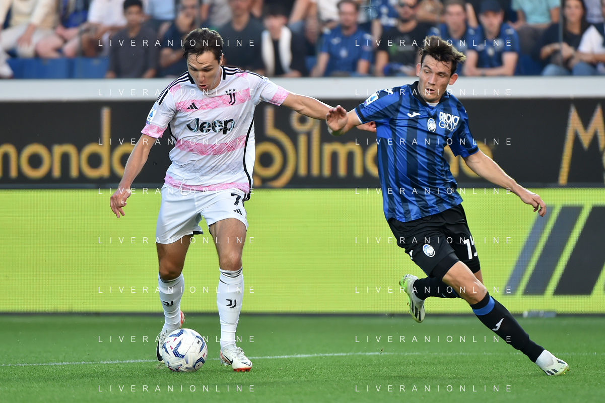 Atalanta vs Juventus nella foto Rafael Toloi (Atalanta) e Federico Chiesa (Juventus) Bergamo 01-10-2023 Gewiss Stadium - Stadio Atleti Azzurri d'Italia Campionato Serie A TIM - 7a giornata foto Roberto Garavaglia/ag. Aldo Liverani sas