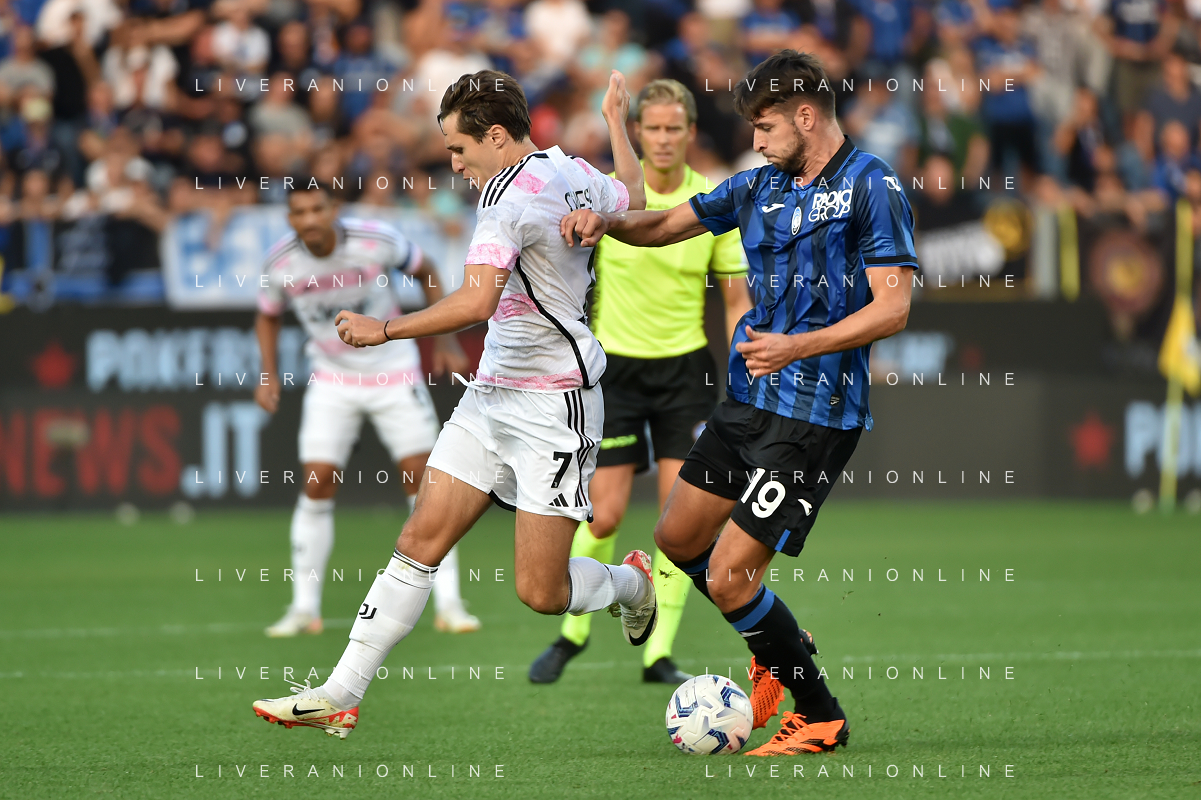 Atalanta vs Juventus nella foto Federico Chiesa (Juventus) e Marten de Roon (Atalanta) Bergamo 01-10-2023 Gewiss Stadium - Stadio Atleti Azzurri d'Italia Campionato Serie A TIM - 7a giornata foto Roberto Garavaglia/ag. Aldo Liverani sas