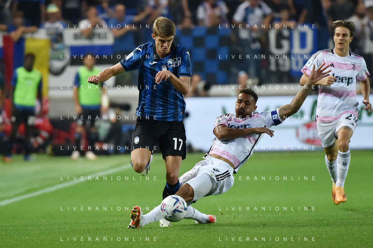 Atalanta vs Juventus nella foto intervento di Danilo Luiz Da Silva (Juventus) su Charles de Ketelaere (Atalanta) Bergamo 01-10-2023 Gewiss Stadium - Stadio Atleti Azzurri d'Italia Campionato Serie A TIM - 7a giornata foto Roberto Garavaglia/ag. Aldo Liverani sas