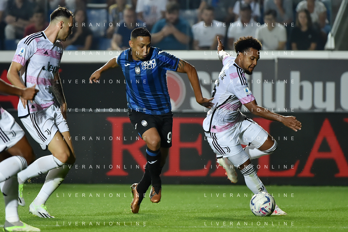 Atalanta vs Juventus nella foto Luis Muriel (Atalanta) e Weston McKennie (Juventus) Bergamo 01-10-2023 Gewiss Stadium - Stadio Atleti Azzurri d'Italia Campionato Serie A TIM - 7a giornata foto Roberto Garavaglia/ag. Aldo Liverani sas
