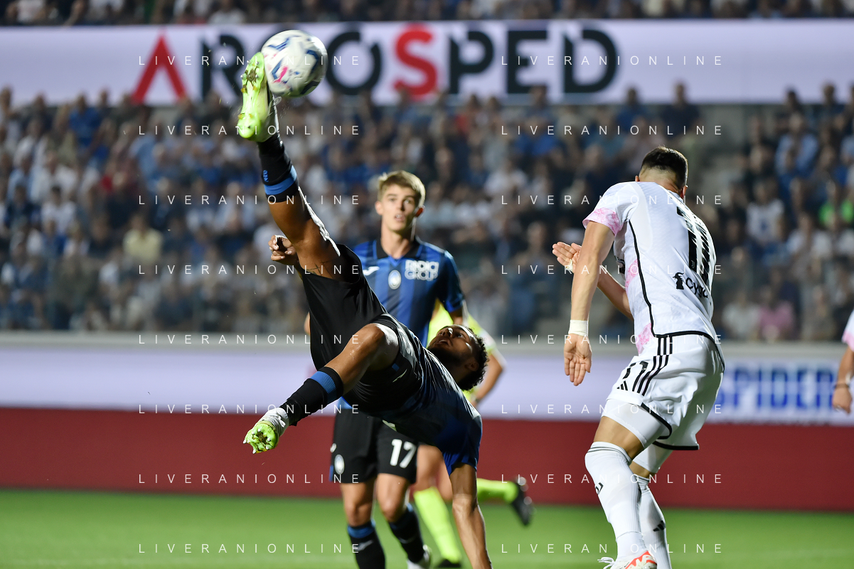 Atalanta vs Juventus nella foto Ederson Jose' dos Santos (Atalanta) prova il gol in rovesciata Bergamo 01-10-2023 Gewiss Stadium - Stadio Atleti Azzurri d'Italia Campionato Serie A TIM - 7a giornata foto Roberto Garavaglia/ag. Aldo Liverani sas