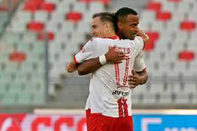 Davide Diaw (SSC Bari) celebrates after scoring a goal with Raffaele Maiello (SSC Bari) during the Italian Serie B match SSC Bari vs Como 1907 on October 01,, 2023 at the San Nicola stadium in Bari, Italy. Photo by Emmanuele Mastrodonato/ag. Aldo Liverani sas