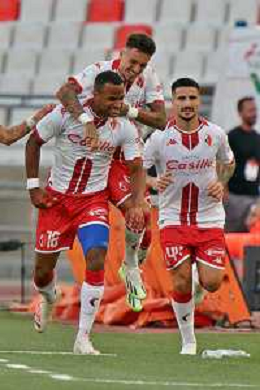 Davide Diaw (SSC Bari) celebrates after scoring a goal with teammates during the Italian Serie B match SSC Bari vs Como 1907 on October 01,, 2023 at the San Nicola stadium in Bari, Italy. Photo by Emmanuele Mastrodonato/ag. Aldo Liverani sas