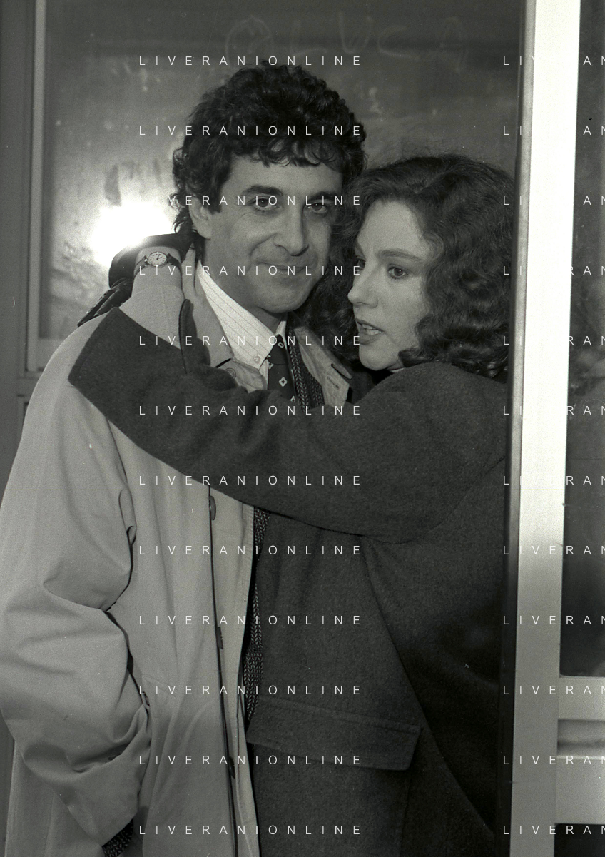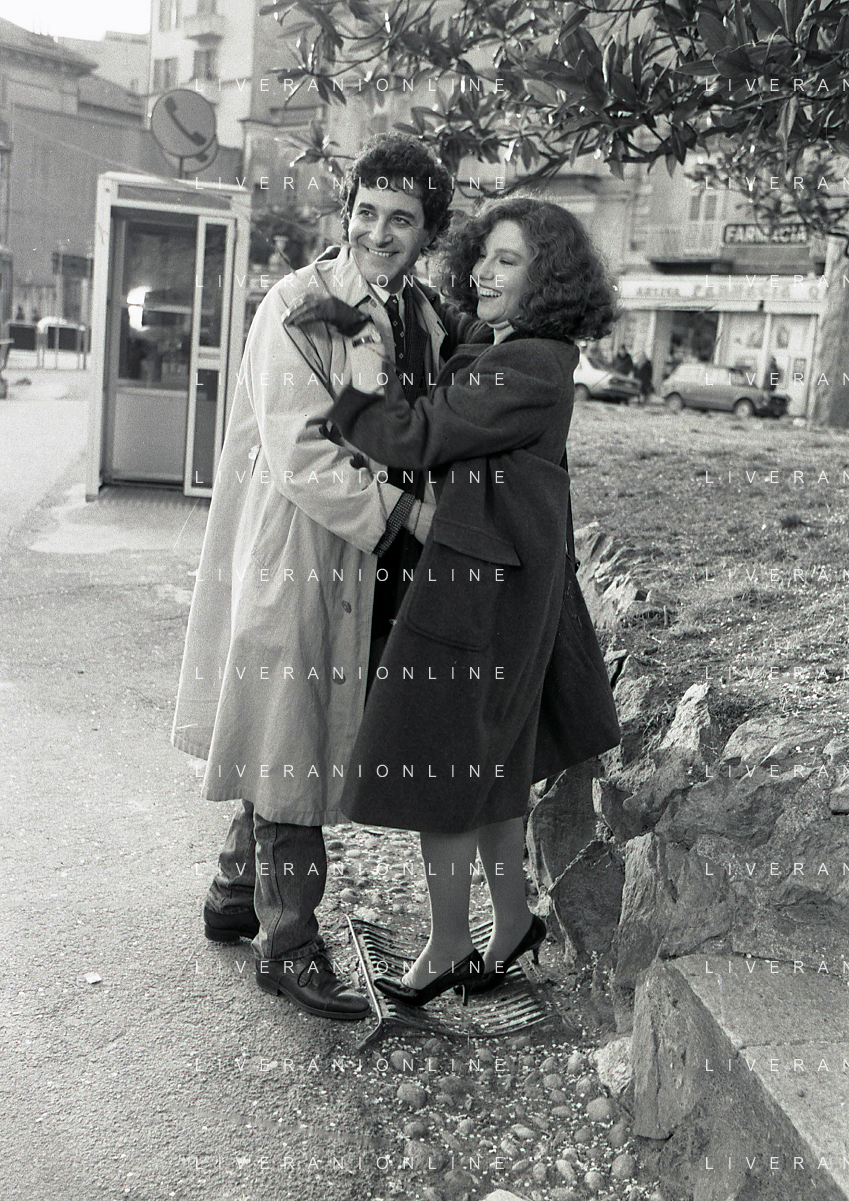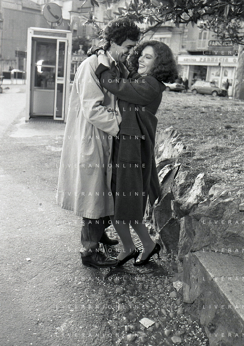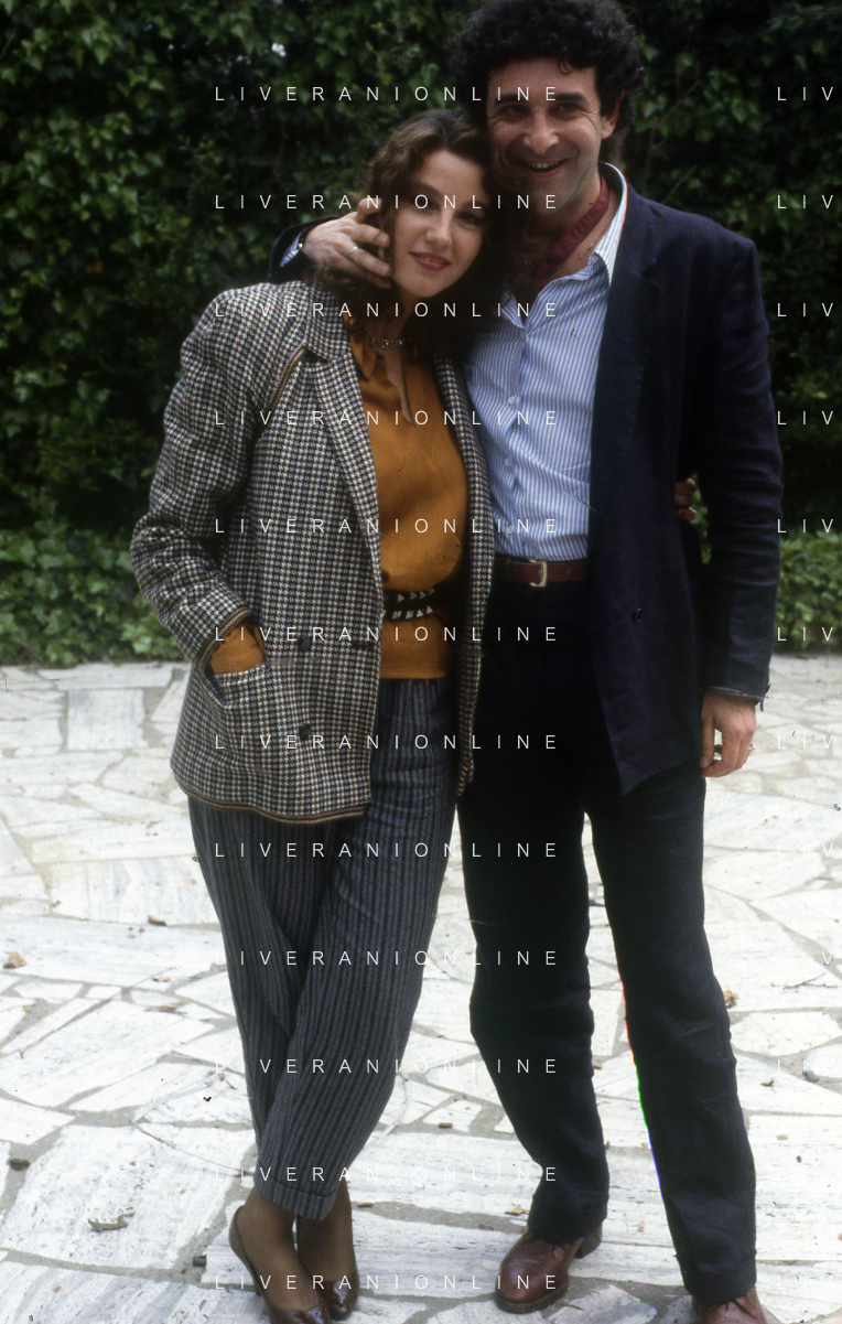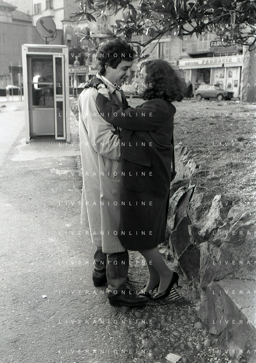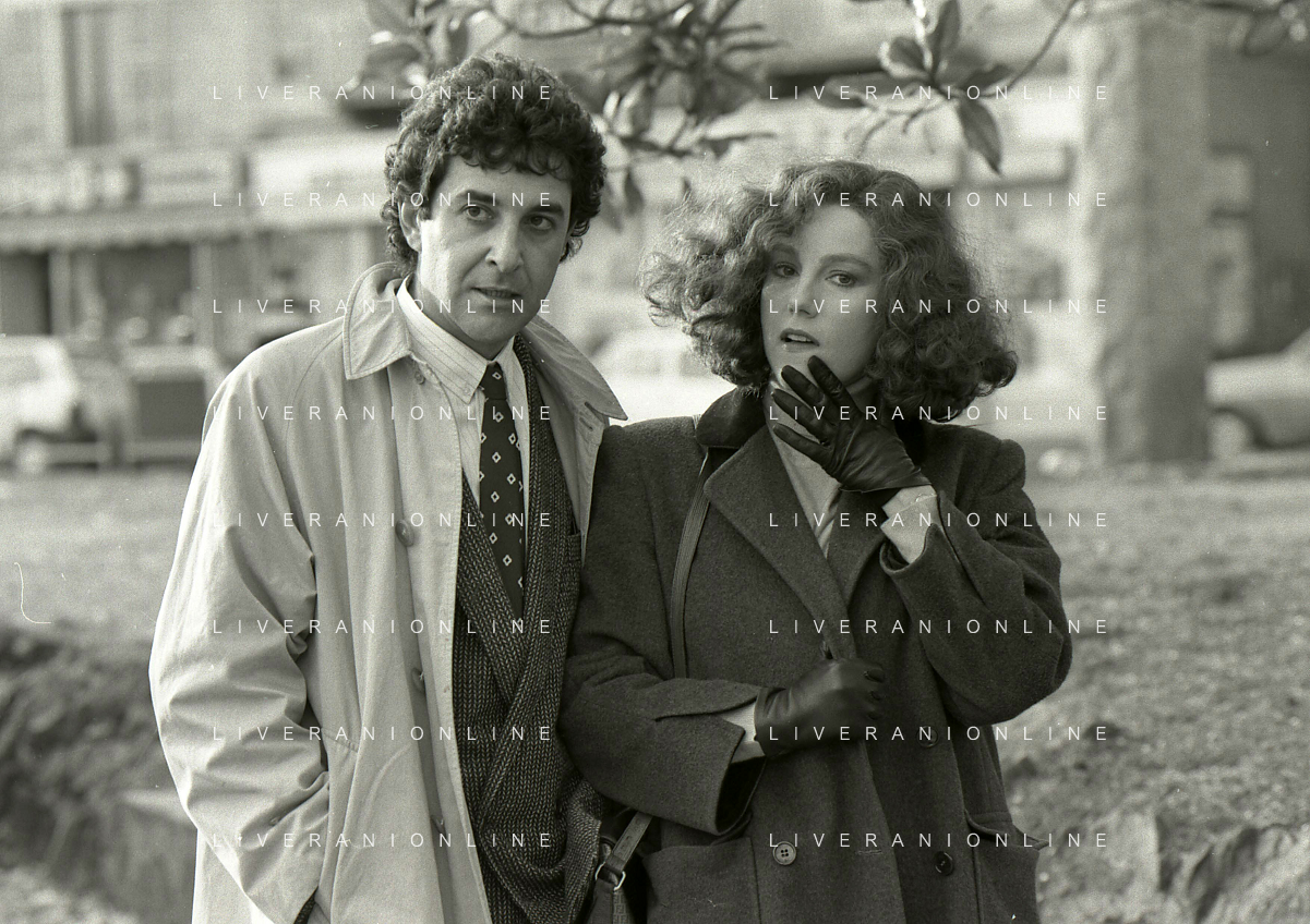 DIAP-RETROSPETTIVA STEFANIA SANDRELLI ATTRICE NELLA FOTO STEFANIA SANDRELLI CON MARZIO HONORATO NELL'ANNO 1984 A IVREA SET DEL FILM SEMBRA AMORE ,UNA SOSTA AG ALDO LIVERANI SAS